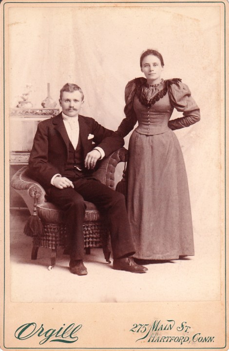 An attractive couple pose for their portrait at the Orgill studio in Hartford, Connecticut. On the reverse of the card, John Orgill markets himself as the leading photographer of Hartford. This couple is poised and well dressed for their day at the photographer. To view other photographs by Orgill, click on Cabinet Card Gallery’s category “Photographer: Orgill”.