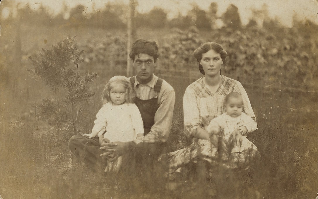 Grapes? Paper Bags? When did paper bags get invented anyway? Why did the photographer choose to photograph four teenage girls eating grapes? Is there some kind of symbolism in the image or is it meant to just show four girls enjoying a picnic? This cabinet card photograph presents a number of interesting questions and I can only answer one of them. Paper bags were invented in 1852. At least that is when Frances Wolle patented the machine that manufactured paper sacks and founded the Union Paper Bag Company. The reverse of this cabinet card has an inscription stating “Stella Pape, 1888”. Stella was actually her nickname. Her given name was Destella L. Pape and she was born in 1872. She was about sixteen years of age at the time of this photograph. In the 1900 US census she was living with her mother (Mary) and older brother (Nielson) in Butler, Pennsylvania She later married George Reiber who was a man twenty-one years her senior. The couple had a son in 1905 who was named after his father (George). Stella Pape died in Pittsburg, Pennsylvania in 1956. She was buried with her son (see the photograph of her gravestone below). The photographers of this image are Criley & Wagner. To view more of their images, click on the category “Photographer: Criley & Wagner”.