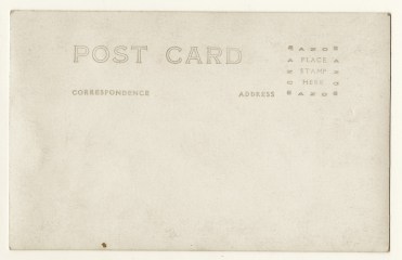 This image is special because it features a baby with a wonderful smile and happy demeanor. It is a rare occurrence to find a portrait of a baby with such a great smile. The photograph was taken at a studio and was used to produce this vintage real photo postcard. The baby is dressed in white and looks so adorable wearing a white sweater and little booties. The baby is sitting on a chair that is covered by a lace light blanket. I am unsure how the baby is safely held in the chair. There is no evidence of a hidden mother’s hands or a device to hold the baby safely in place. A studio backdrop can be seen in the background. The AZO stamp box on the reverse of the image indicates that the postcard was produced sometime between 1924 and 1949