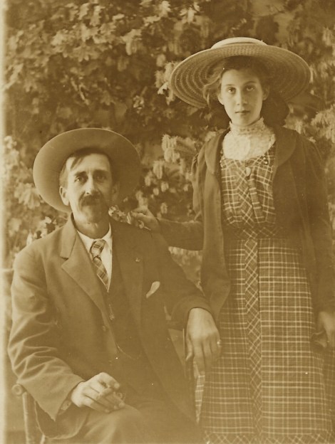 This cabinet card portrait features a well dressed woman wearing a spectacular hat and spectacles. Her glasses are modern versus old school. They have temples and are not the pince niz variety of eyewear. The woman in this image appears quite serious. The photographer of this photograph is Napleon J. Loupret. His studio was at 51 Central Street, in Lowell, Massachusetts. According to an online researcher, Loupret occupied this building from 1885 until 1893. City directories indicate that he worked as a photographer in Lowell between 1880 and 1911. The 1913 directory reveals that Loupret was working as a watchman. Mr. Loupret was born in Canada in 1858 and moved to the United States around 1880. He married Frances H. Hevy in 1883. Interestingly, Loupret , at one point in his career, was partners in a studio called Hevy & Loupret. It is likely that Louis N. Hevy was Loupret’s father-in-law or brother-in-law. Napoleon Loupret died in 1925. A portrait of the Loupret family can be seen below. I believe that Napoleon is the young man sitting on a chair in the back row. The image was found on the ancestry.com site.