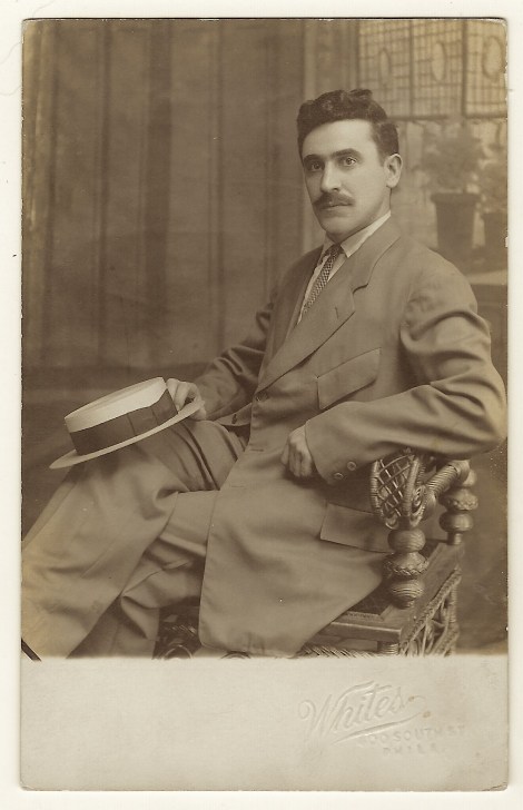 This cabinet card portrait features a well dressed gentleman wearing a huge mustache. The mustache is joined with his sideburns. To see other amazing mustaches, click on the cabinet card gallery’s category of “Mustaches (Only the Best). The photographer of this facial hair extravaganza is D. B. Millard. He operated a studio “Over the Post Office” in Scranton, Pennsylvania. His cabinet card price list can be seen on the reverse of this photograph. The cost of a cabinet card was $3.00 but volume buyers could purchase a dozen photographs for $1.50 each. The internet resource, Langdon Road, reveals that Millard owned Millard’s Gallery, at 314 Lackawanna; in the city of Scranton. His obituary appears in the “Photographic Times and American Photographer” (1891). The article labels him as the best and most popular photographer in Scranton. The obituary notes that Millard died of heart failure after a short illness. Millard’s name appears in Scranton’s business directories from at least 1879 through 1888. Other directories list his name as “Durand B. Millard”. SOLD