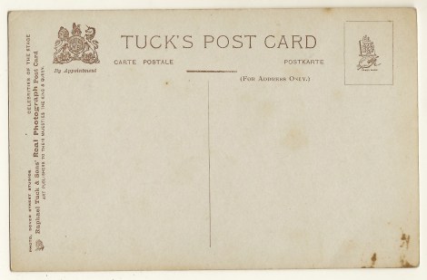 This vintage real photo postcard features stage actress Mabel Dark. She is quite pretty and is wearing a dress exposing her bare shoulders. This image was produced by the Dover Street Studios. The postcard was published by Raphael Tuck & Sons and is part of the “Celebrities of the Stage Series (no. T 1141)”. Raphael Tuck and his wife started their photography business in 1866 in London. Their store sold pictures, greeting cards, and in time, postcards. Their success came from the sale of postcards during the late 1890’s and early 1900’s. In the early 1900’s the firm conducted postcard competitions for collectors of Tuck postcards. These competitions offered cash prizes and they were very popular. The winner of one of these competitions had a collection consisting of over twenty-five thousand cards. Three of Tuck’s four sons participated in the business. The company was devastated by German bombing during World War II. In 1959 the company merged with two other printing companies. SOLD