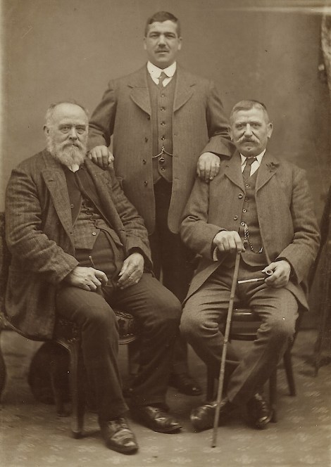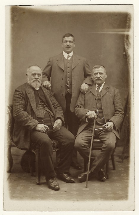 This vintage real photo postcard features three distinguished looking and well dressed older men. One of the men is holding a pipe and a cane. Two of the gents are wearing pocket watches. This postcard was produced by Crown Studios sometime between 1913 and 1929. The postcard is in good condition (see scans).