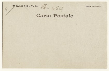 This vintage real photo postcard features a portrait of a pretty performer named Debry. She was photographed by a famous photographer with the last name of Nadar. The question exists whether the photographer is Paul Nadar (1856-1939) or Gaspard-Felix Tournacon (AKA Nadar) (1820-1910). This postcard dates back to circa 1904, and by that time the elder Nadar was 84 years old and not active in studio photography. Therefore the photographer was the younger Nadar. Paul was the son of Gaspard-Felix. Both were famous in the field of photography but their talent stretched to other disciplines. Paul’s talent extended to art, printing, and writing. In 1874, Paul managed his father’s Paris studio. In around 1885 their relationship fractured. However the following year, the two collaborated on what is thought to be the first photo-interview in history. The subject of the interview was a prominent 101 year-old chemist and color theorist. That same year, Paul began photographing from a hot-air balloon. Paul liked experimenting and this led to him studying artificial lighting and developing a patented projection system for animating still pictures. Kodak named him their agent in France in 1893…. Gaspard Felix (G.F.), in addition to being a photographer, was a caricaturist, journalist, novelist, balloonist and advocate of manned flight. Portraits by G.F. can be found in a number of national museum collections. He opened his photography studio in Paris in 1854. He was a celebrity photographer (Actors, Politicians, Writers, Painters, and Musicians). He attracted many famous sitters because he was considered the best photographer in France. He was no fan of studio props. He preferred natural daylight. F.G. was most interested in focusing his photography on his subject’s face.He wanted the subjects to wear dark clothing for their portraits and often hid their hands from the camera. Although, he photographed many women, he preferred to photograph men. He believed that women believe “the images are too true to nature to please” them; even the most beautiful of the women. He once wrote that the most vain portrait sitters were actors and the second vainest group was soldiers. Ballooning was another area of F.G’s interest. He was involved with writer Jules Verne in an organization supporting the development of “air machines”. In the 1850’s G.F. was experimenting taking aerial photographs. During the siege of Paris in 1870, Nadar was a principal in organizing balloon flights to do reconnaissance and carry the mail, creating the first airmail service. This postcard portrait was part of a series (no.769). (SOLD)