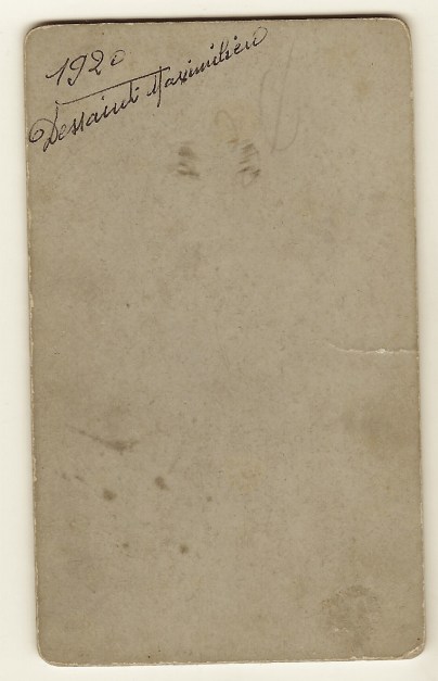 This carte de visite features a uniformed military man. I believe he is an officer. Note that he is holding a pair of white gloves. He was photographed by A. Grossin who operated a studio in Paris, France. An inscription on the reverse of the photograph contains the soldiers name and the date of the photo (1920). SOLD
