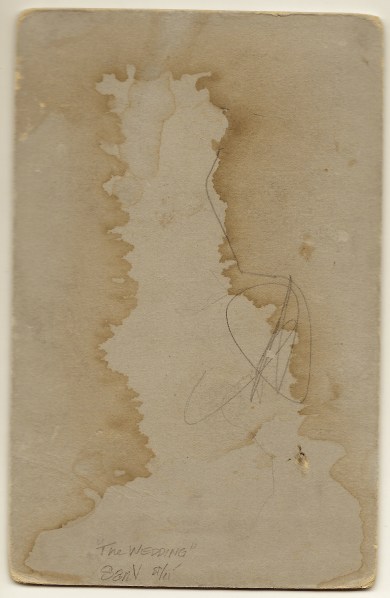 This cabinet card photograph was purchased in the Texas Hill Country but was taken at a wedding in Northhampton, Pennsylvania. This group is the “mother” of all wedding parties. The bride is wearing a dark wedding dress and four of the women are wearing tiaras. Some of the children are holding dolls. Note the accordion player sitting in the bottom row. Apparently he was supplying the entertainment at the wedding reception. This cabinet card was photographed by Thomas Lenhart. He operated a studio in Northampton, Pennsylvania. The cabinet card gallery has other images from Mr. Lenhart’s other studio. It was located in Allentown, Pennsylvania.He was a talented photographer and one of his photographs is exhibited in the American Museum of Photography. The cabinet card displayed is a double self portrait. It is called a double self portrait because the image captures Lenhart taking a photograph of himself. In other words, he assumes two different poses in the same photograph. Lenhart is known to have operated in Allentown between 1894 and 1899. It is very possible that he was located there before and after those years; but no documentation for other years has been found. To view other photographs by Lenhart, click on cabinet card gallery’s category “Photographer: Lenhart”. SOLD
