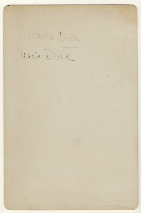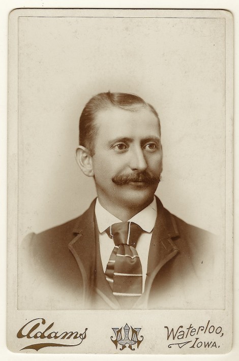 Meet Uncle Dick. His name is inscribed on the reverse of the cabinet card. He appears to be middle aged and possess a sunny disposition. He is well dressed and has a nicely groomed mustache. Note the width of his tie. I find it interesting that the width of neck ties tend to vary as the years go by. This photograph was produced by the Adams studio in Waterloo, Iowa. It is difficult to ascertain the full name of the photographer. W. G. Adams worked in Waterloo in the 1880’s but I could not find any information about him. Asa W. Adams (1842-1915) operated a studio in McGregor, Iowa (1863), Decorah, Iowa (1863-1884). In 1866 he married Emma J. Fuller and the couple had four children. Adams conducted his photography business in Waterloo (1884-after 1900). Adams died in 1915 and is buried in Decorah. This cabinet card is in very good condition (see scans).