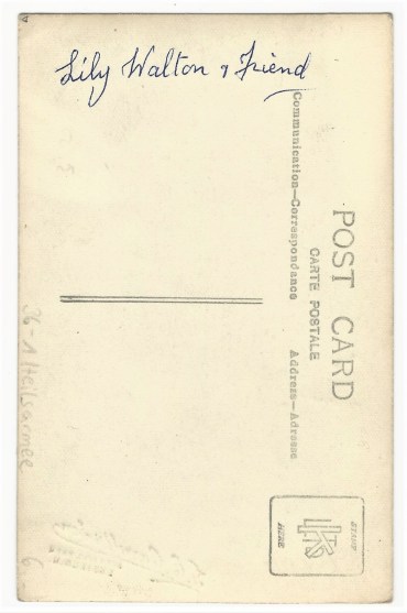 This vintage real photo postcard features two women dressed in their Salvation Army uniforms. Both ladies are smiling for the camera. Note that the seated woman is wearing a “S’ pin on her collar. The “S” of course symbolizes the Salvation Army. The photographers name and location are embossed on the lower right hand corner of the image. The photo was taken by the George E. Carroll & Son studio, located in Bush Hill Park, Enfield, England. An inscription on the reverse of the photograph reveals that the subjects are Lily Walton and friend. It is unknown which woman is Lily Walton. This postcard was published by K Ltd. sometime between 1918 and 1936. The postcard has excellent clarity and is in very good condition (see scans).