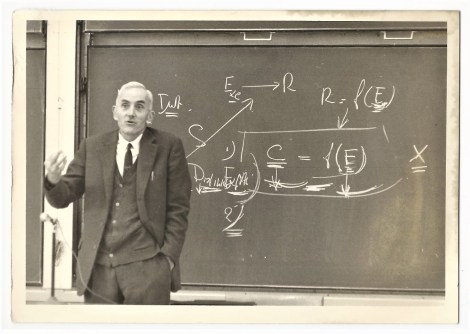 A professor of math, physics, chemistry, or who knows what, stands in front of his classroom teaching his lesson. Behind him is a blackboard displaying a very complicated equation. A prize is offered to anyone who is able to solve the equation. After much study, no student in the large class is able to solve the problem. However, someone had clandestinely slipped into the lecture hall and wrote the answer on the board. Who could be the genius that solved the perplexing equation. Surprisingly, it was Matt Damon, the self-taught school janitor that had deduced the solution. Wait a minute! I think I am confusing this photograph with the 1997 film, “Good Will Hunting”. This educational vintage photograph measures about 4 3/4″ x 3 1/4″ and is in good condition (see scans).