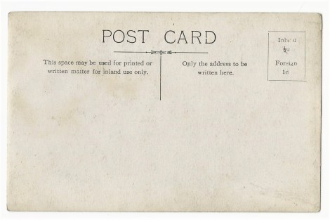 This vintage real photo postcard features four siblings posing for their portrait. Each child is cuter than the other. Note the boy’s neatly combed hair and bow tie. The girl sitting on the chair appears to be the only one having a good time at the photographer’s studio. She is showing a hint of a smile. This postcard’s stamp box indicates that the card was published by Crown Studios sometime between 1913 and 1929. (SOLD)