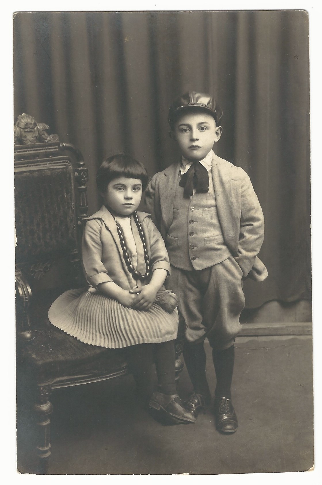 TWO WELL DRESSED SIBLINGS AND A MESSAGE IN A LANGUAGE I CAN NOT IDENTIFY
