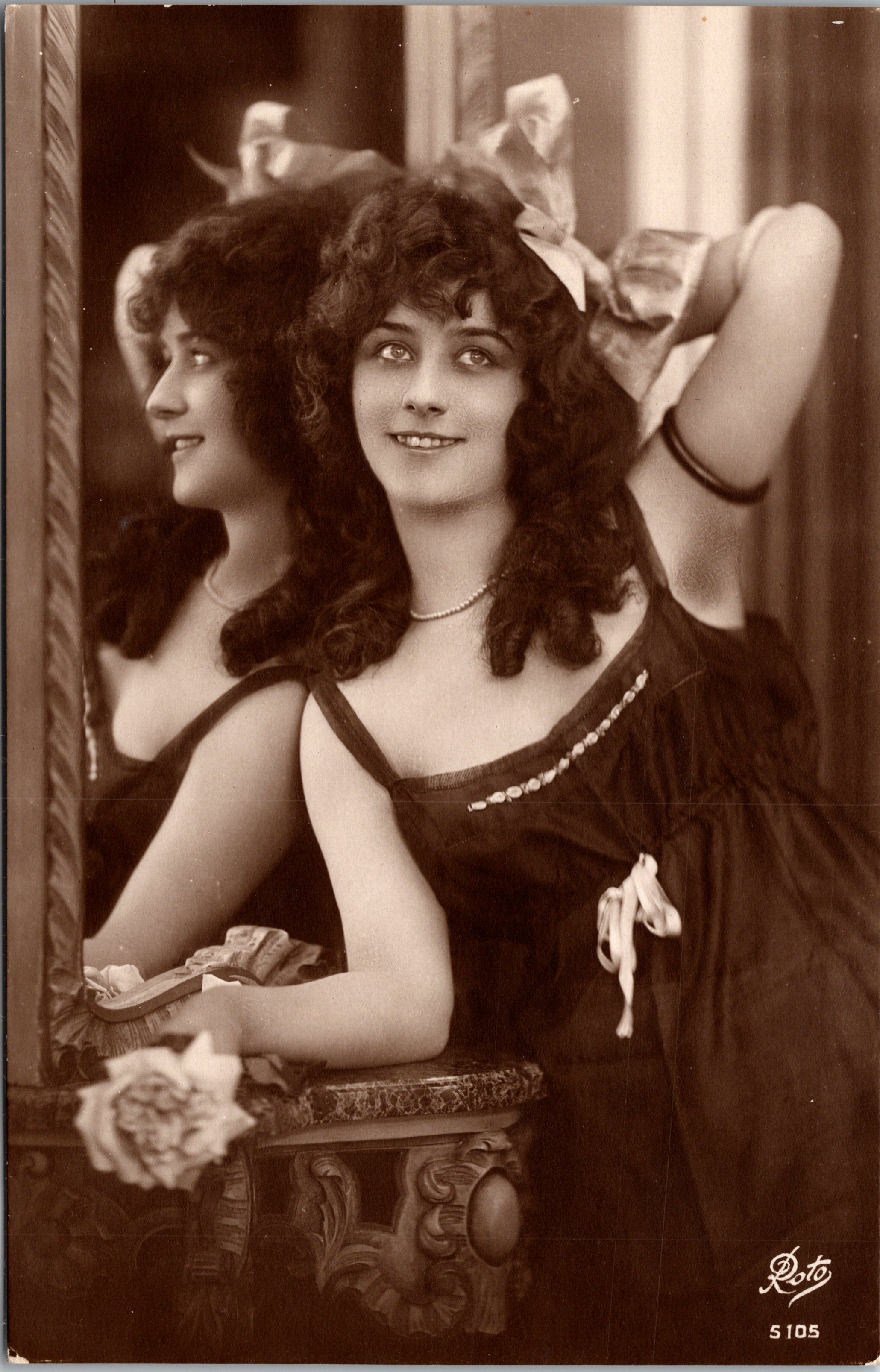 These vintage real photo postcards feature beautiful stage actress Marie Studholme (1872-1930). The English actress and singer was known for her supporting and starring roles in Victorian and Edwardian musical comedies. Her theater career spanned from 1891 through 1915. Her roles included appearances in “An Artists Model” (1895), “The Messenger” (1900), and “Lady Madcap” (1906). Marie Studholme’s beauty made her one of the most popular postcard models of her time.