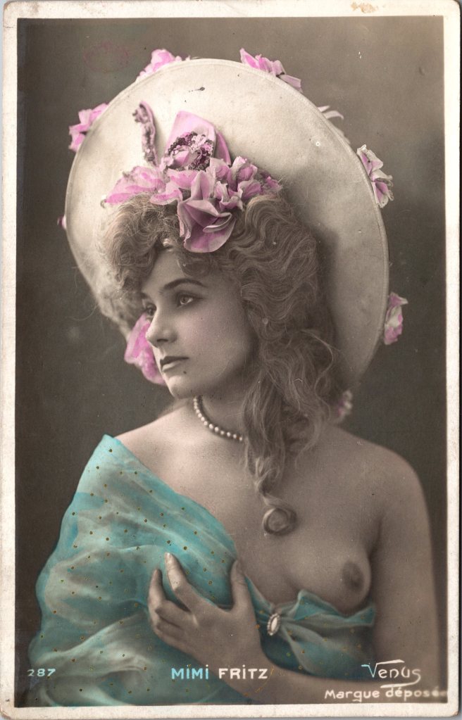 MIMI FRITZ : PARTIALLY NUDE : BEAUTIFUL STAGE ACTRESS : RISQUE :HAND TINTED RPPC