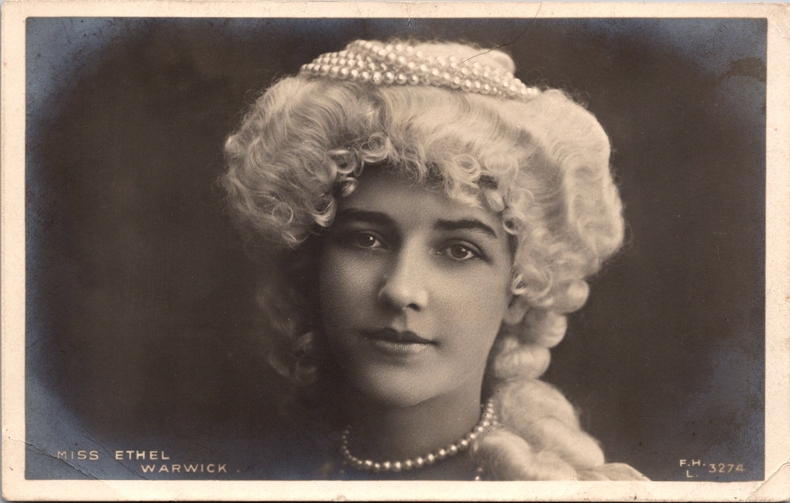 Postcard 2 offers a close-up photograph of Miss Warwick. This vintage real photo postcard has a crease in it’s bottom right and left hand corners. The portrait postcard is in overall good condition (see scans).
