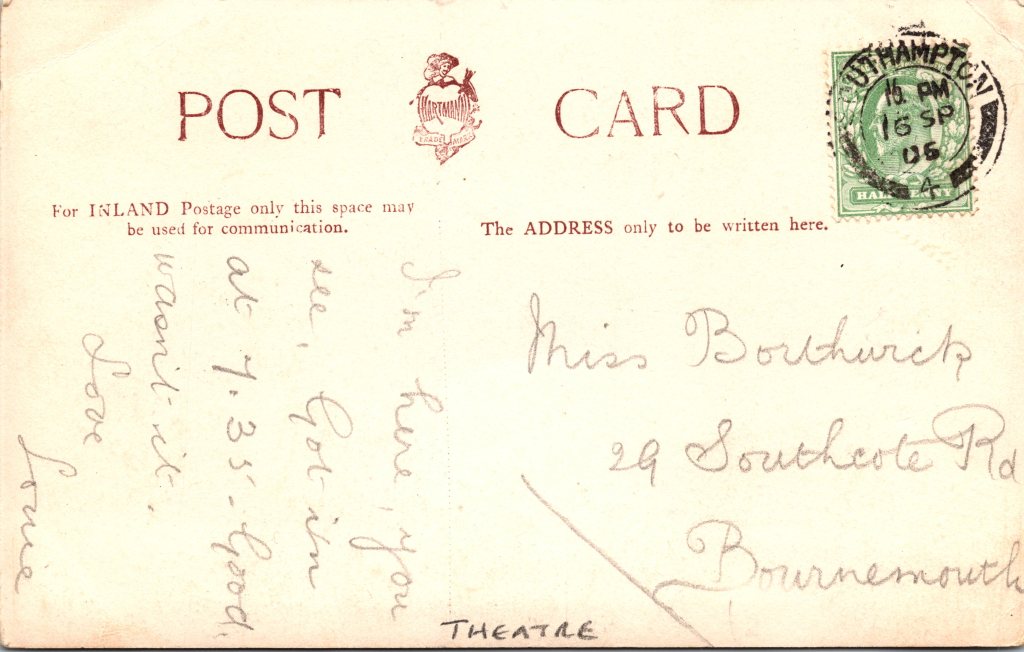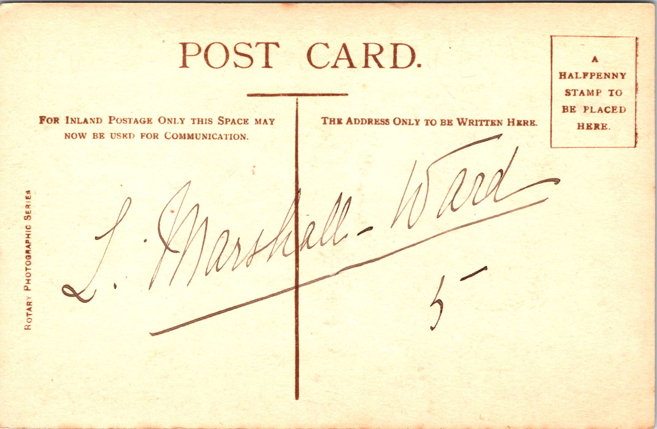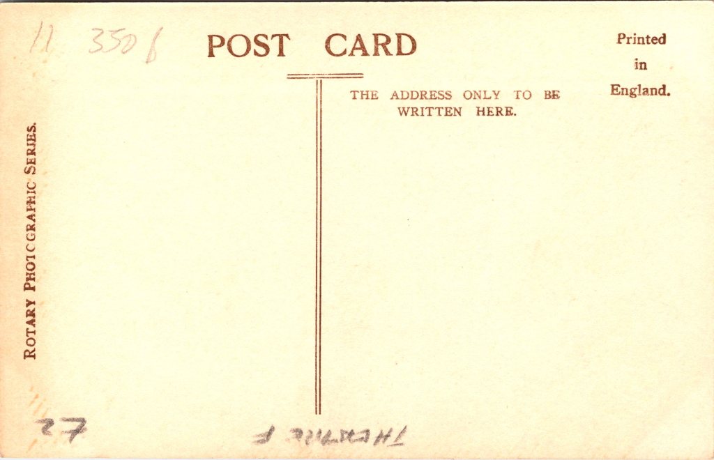 Postcard 1 features American stage actress, and singer, May de Sousa (1884-1948). She had many successes, but she lived a tragic life. Her father was a Chicago police detective. She became famous in 1898, I at about 14 years of age, when she sang “Dear Midnight of Love”. This song was a ballad by bathhouse John Coughlin. He was a Chicago politician and would-be songwriter. In 1901 she was hired by Frank Perley as one of the principles for his touring company. Next, she became the understudy for Alice Nielson in a San Francisco production. In 1902 she was invited to go to London with the cast of that show, but she turned down the opportunity because she was afraid of the sea voyage. She then joined the cast of the highly successful operatic fantasy, “The Storks”. In 1904 she joined the cast of the Wizard of Oz. That same year, she became part of the cast of “Babes in Toyland”. At this point, she had become a very popular actress. She then went to London to star in a production of Cinderella. She followed that up with other stage successes in London. Although she had much success in light operatic roles, she wanted to display her talent as a dramatic actress. In 1908 she was one of the first American actresses to perform at the Moulin Rouge. While in Paris she was reported missing because she did not contact friends or family for over five weeks. She returned without explanation. She was now a star in both the United States and England. In 1910, her mother was discovered dead in a room filled with gas. It was unknown whether her mother’s death was accidental or by suicide. In 1910, May married a stockbroker. Their marriage was very troubled from its beginning. Her husband had lied about his finances, and the financial burden fell on the De Sousa. In addition, her husband frequently physically, abused her. After two years of marriage, she divorced him on the grounds of cruelty and financial desertion. De Sousa continued her career in both America and Europe. De Sousa appeared in 8 Broadway plays between 1905 and 1915. She was performing in France shortly before the start of World War I and barely escaped Germany’s invasion of France. In 1913, she was forced to declare bankruptcy. In 1918, she toured Australia with a theatrical company. While there, in about 1919, she married a local doctor and the pair moved to Shanghai. She performed there with amateur companies. In 1941 her husband died, and in around 1943 she was imprisoned for seven months as a civilian intern by the Japanese. When she returned to Chicago, she worked as a scrub woman in a public school. Her health was very much compromised by her internment, she soon was forced to quit her job due to not being healthy enough to perform her tasks. She became malnourished and died in poverty and alone. She was a charity case in the county hospital when she died in 1948. May DeSosa had risen to become the toast of Europe and America, but died isolated and forgrotten. She was buried in a pauper’s grave. This vintage postcard was published by Philco as part of a series (No.3206B). The card was postmarked in 1907. (SOLD)