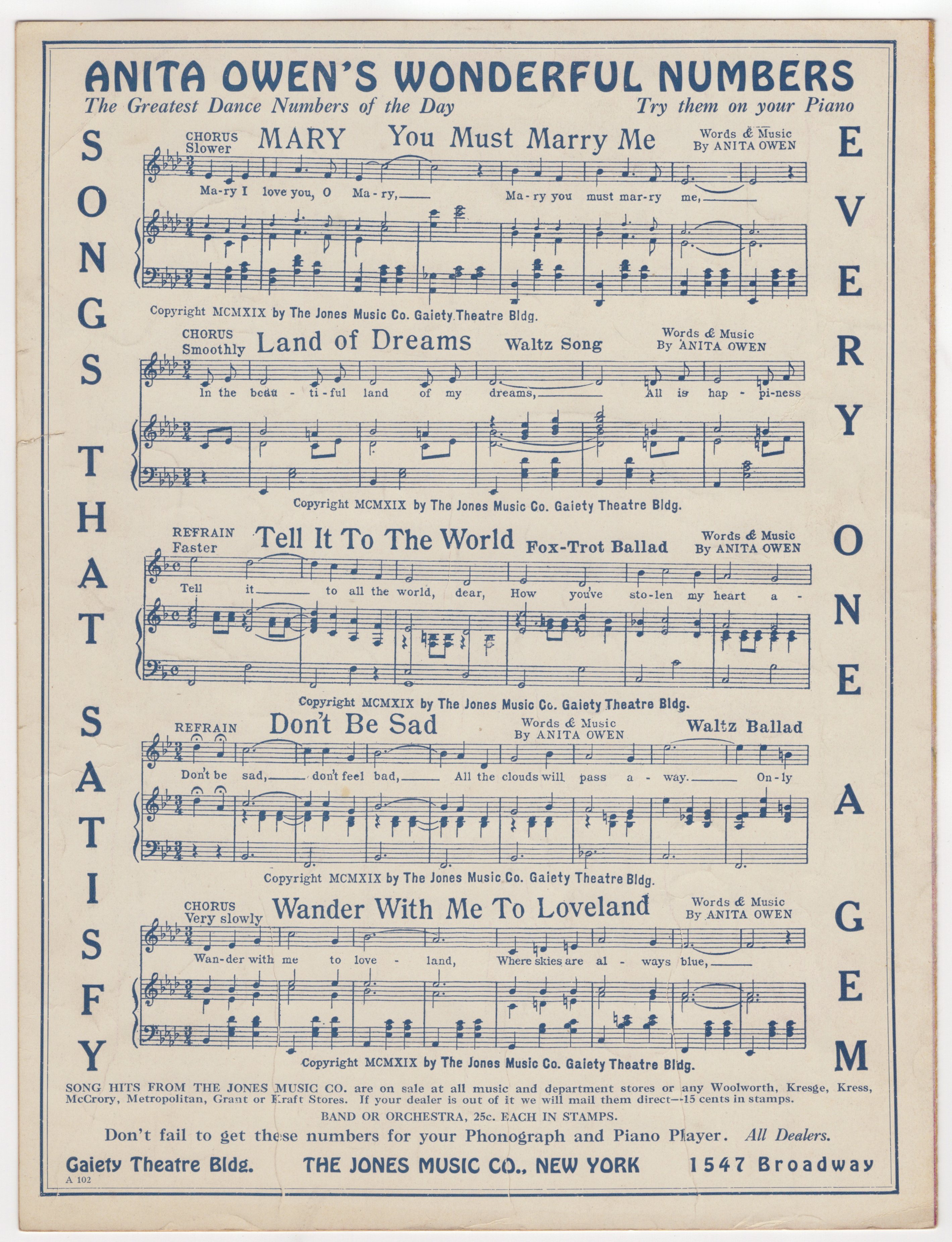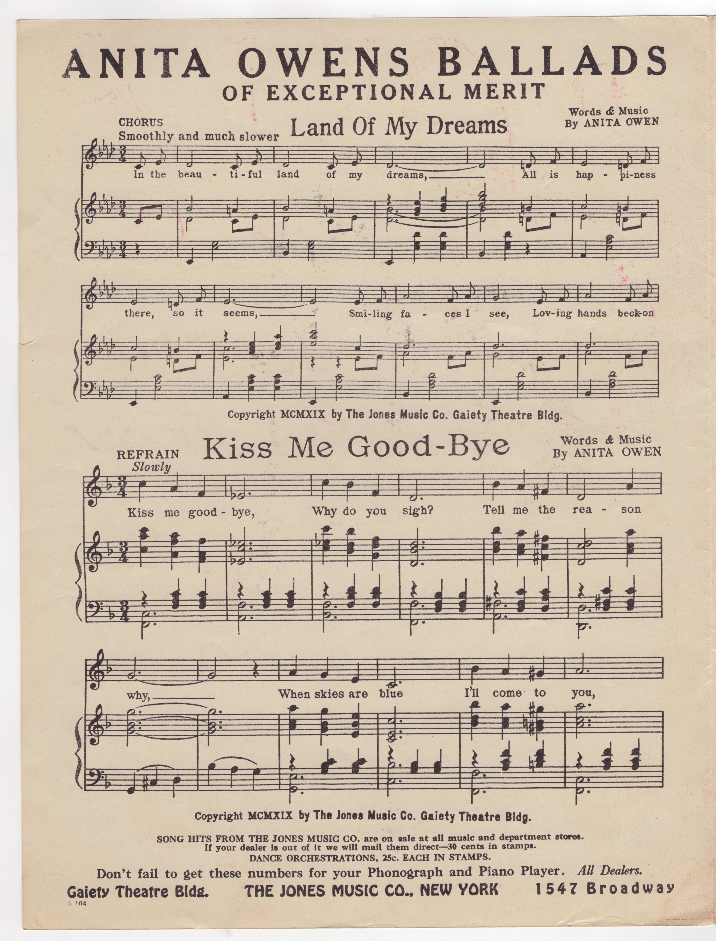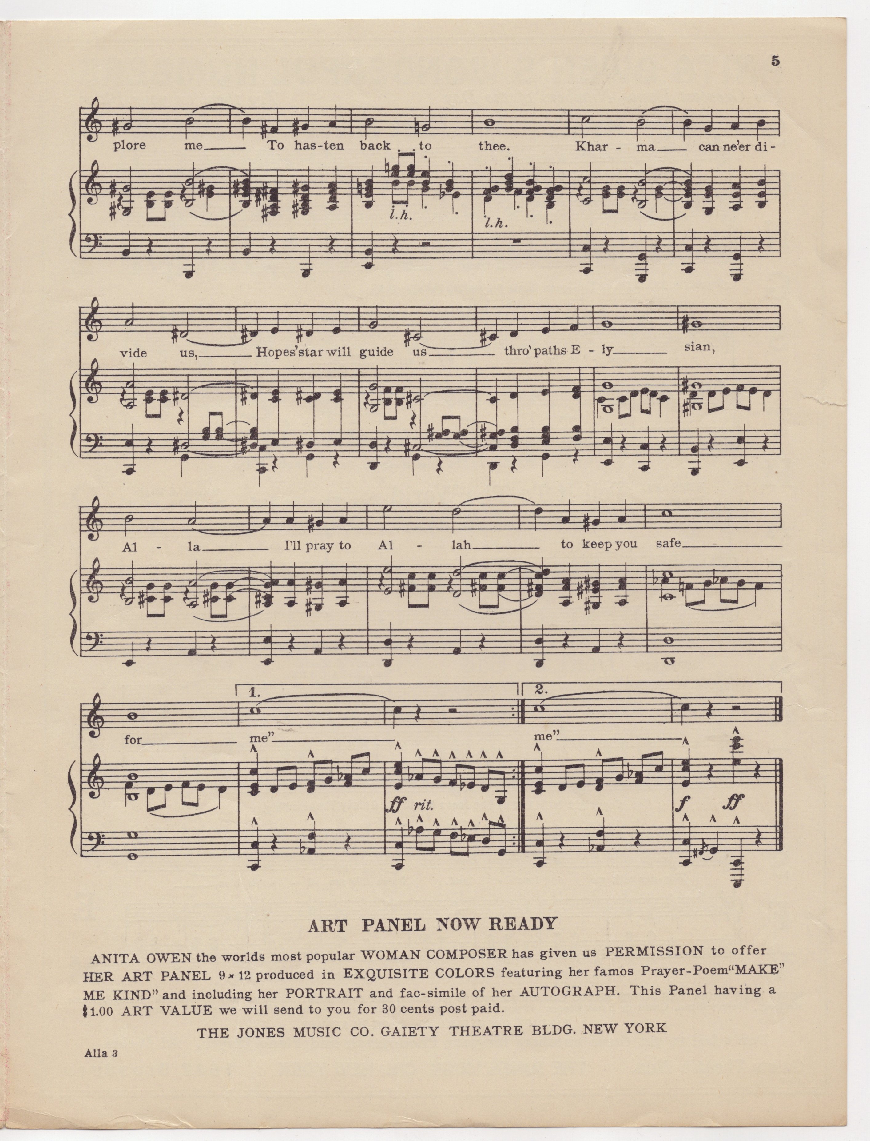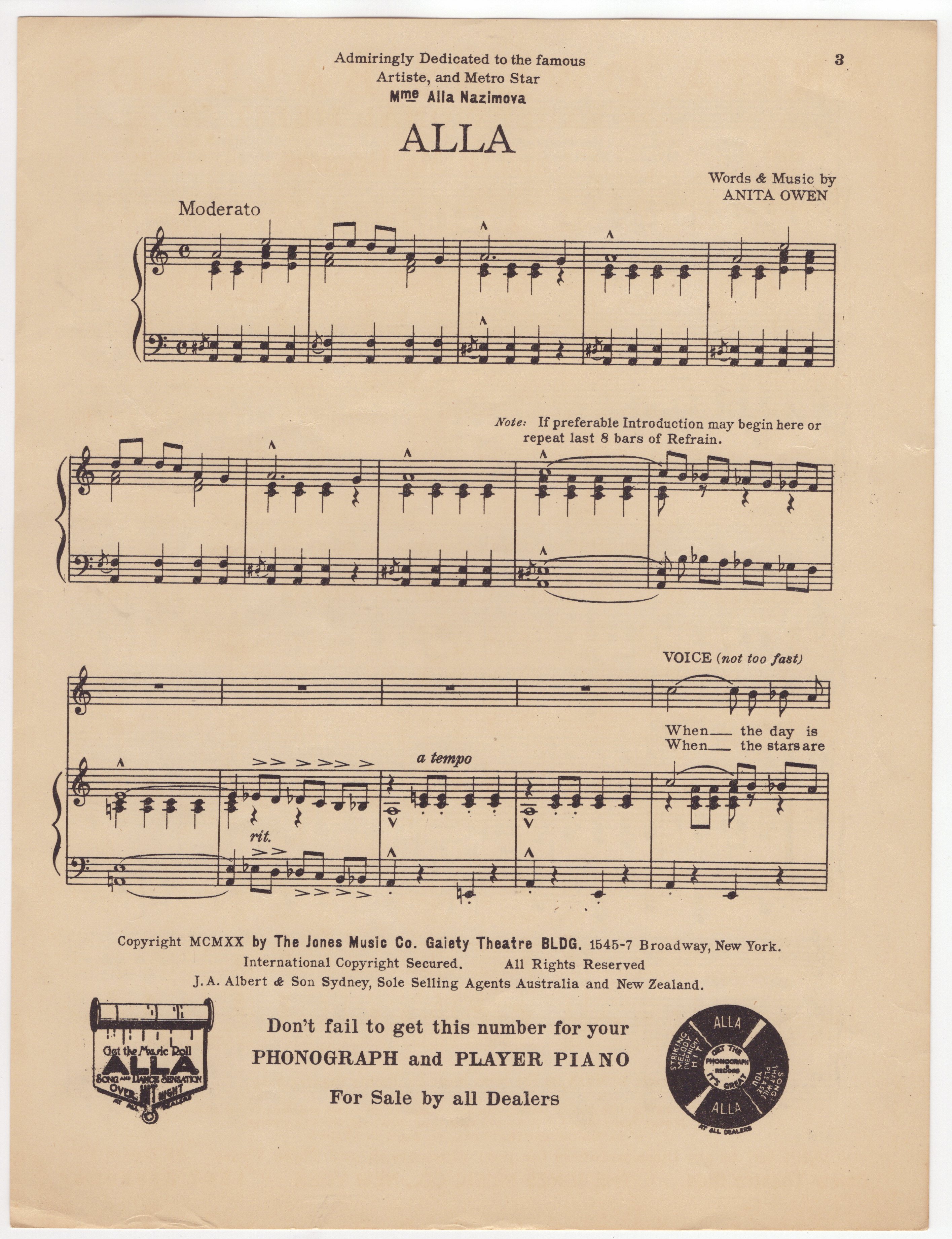 ALLA NAZIMOVA TRIBUTE SONG : BY ANITA OWEN : JONES MUSIC CO. : SHEET MUSIC 1920