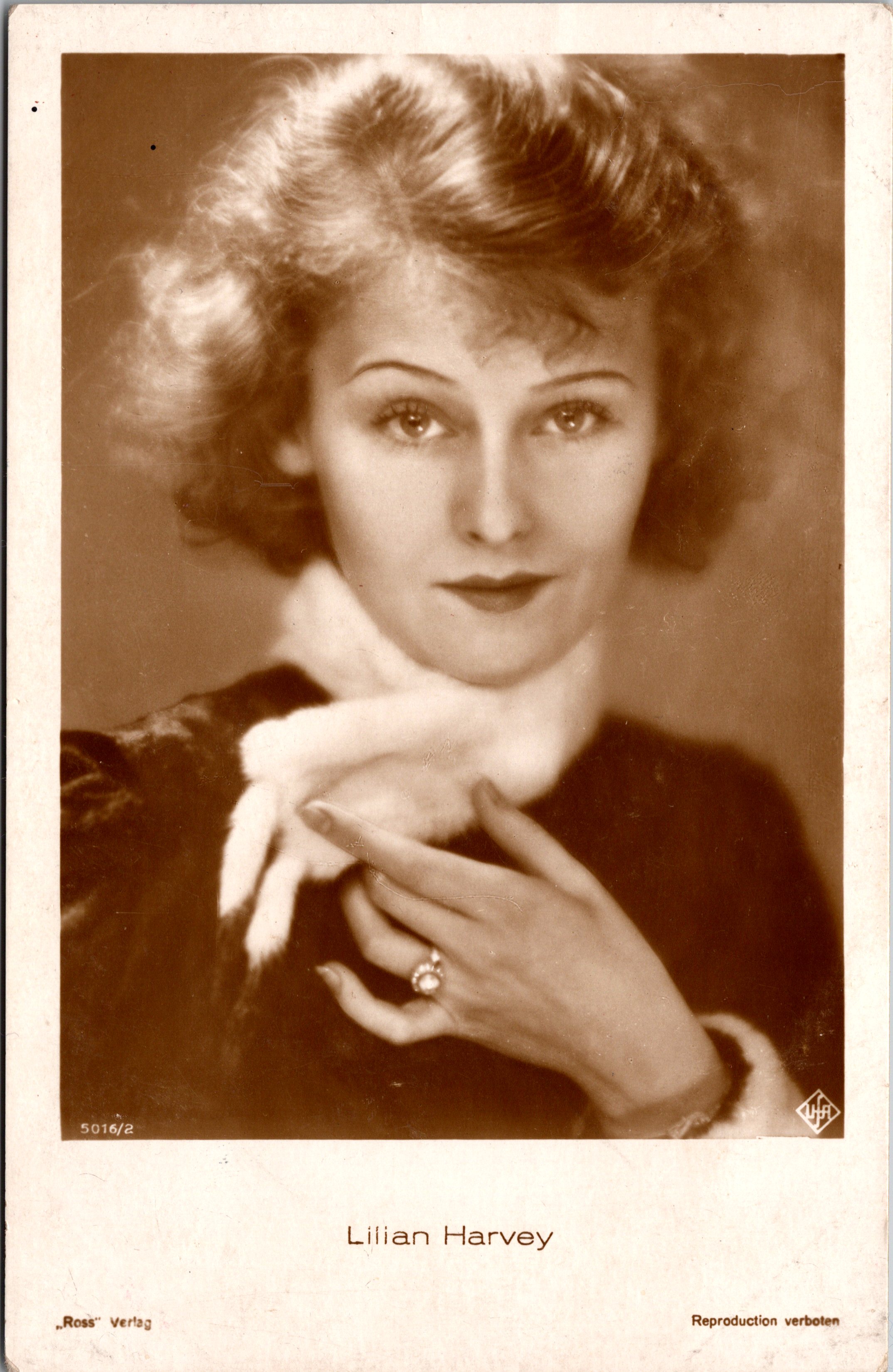 The fourth postcard (postcard 4) showcases Lillian Harvey’s beautiful smile. Miss Harvey’s not quite plunging neckline was clearly aimed to add a bit of a risque element to the photograph. This postcard was published by Ross Verlag (Berlin) and is part of a series (no. 1019/2). This portrait was taken by the talented photographer, Alex Binder. The photographer of this terrific image was Alexander Binder (1888-1929). He had the largest photo studio in Europe during the late 1920’s and the 1930’s. Many of his entertainment star portraits appear on Ross Verlag postards. It is thought that Binder was of Swiss origin. He was of the Jewish faith. He studied engineering but did not complete his studies. From 1908 to 1910 he studied photography at a school in Munich, Germany. After the completion of his photography studies, he went to Berlin and in 1913 opened his first photography studio. Before long, he became one of the premier photographers in Berlin. He primarily focussed on fashion and celebrity photography. Since Berlin was the capital of the European film industry, Binder photographed all the stars of the European film industry including, Lilian Harvey, Conrad Veidt, and Lya De Putti. Many of his images were used in popular film portrait postcards. His photographs could be seen in postcards published by Ross Verlag and Photochemie. Binder died in 1929 but new photo cards bearing his signature continued to be published until 1937.
