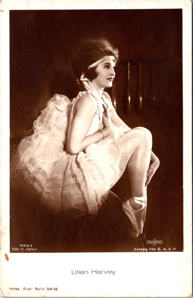Postcard 15 shows Lillian Harvey wearing a ballerina costume and it is clear that the aim of the photographer is to emphasize Miss Harvey’s sexuality. The photographer and Miss Harvey succeeded in accomplishing this goal. The postcard was published by the Austrian firm Iris Verlag and was part of a series (no.764). Iris Verlag in Vienna was the most important Austrian publisher of film star postcards. The photographer of this portrait was E. Weil & Co. SOLD
