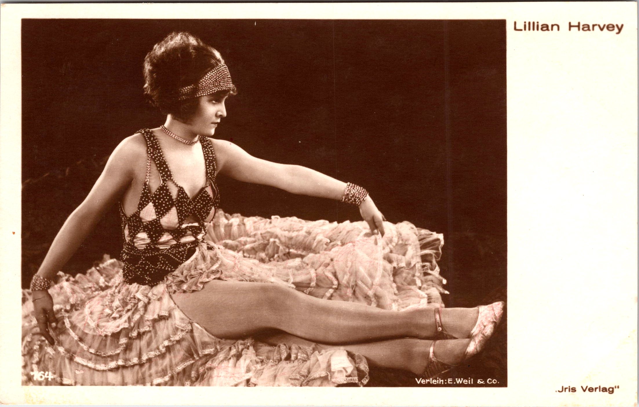 Postcard 15 shows Lillian Harvey wearing a ballerina costume and it is clear that the aim of the photographer is to emphasize Miss Harvey’s sexuality. The photographer and Miss Harvey succeeded in accomplishing this goal. The postcard was published by the Austrian firm Iris Verlag and was part of a series (no.764). Iris Verlag in Vienna was the most important Austrian publisher of film star postcards. The photographer of this portrait was E. Weil & Co. SOLD