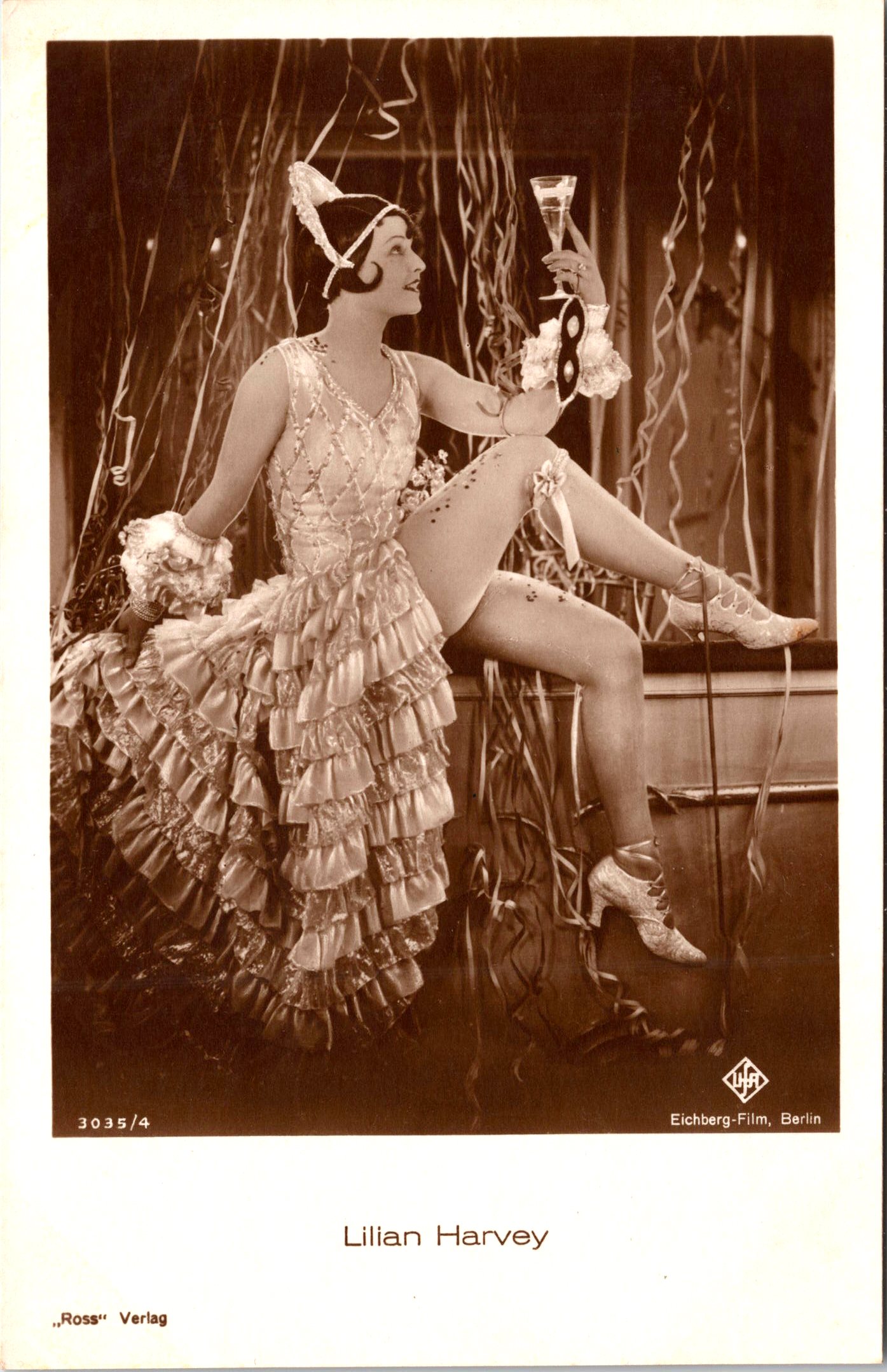 Postcard 10 is meant to be risque. Harvey is wearing a provocative dress and it is clear that the aim of the photographer is to emphasize Miss Harvey’s sexiness. The photographer and Miss Harvey succeeded in accomplishing this goal. This card has the logo of Fox Films. She made four films for the company beginning 1931. Lillian Harvey was a popular postcard model and there are many postcard images of her in existence. However, this particular card is very uncommon and one of the more suggestive photographs of Miss Harvey published on a postcard. This postcard portrait was published by Ross Verlag (Germany) as part of a series (No.8000/1). SOLD