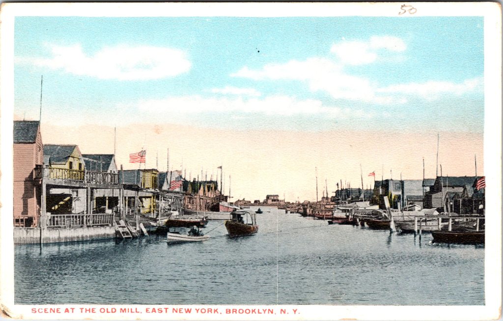 OLD MILL WATERFRONT : EAST NEW YORK, BROOKLYN NY : VINTAGE POSTCARD c1910s