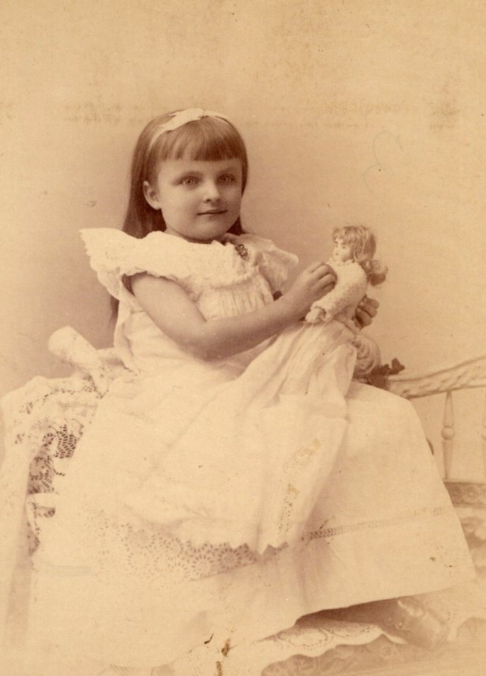 ADORABLE LITTLE GIRL AND HER DOLL : ST. THOMAS, ONTARIO, CANADA : CABINET CARD