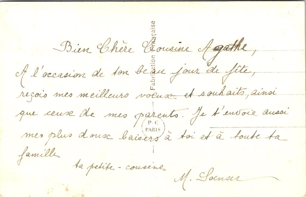 This exquisite early 20th-century hand‑tinted portrait postcard features the renowned Belgian‑born opera soprano Lucy Berthet (1866–1941), captured in profile by the eminent French studio Nadar. Gaspard‑Félix Tournachon, known as Nadar, was born 6 April 1820 and died 23 March 1910. His son, Paul Nadar (8 February 1856 – 1 September 1939), took over the studio. It’s believed this card is by Paul Nadar, as he is known to have photographed Lucy Berthet. Lucy trained at the Conservatoire de Paris , where she won the First Prize in opera singing in 1892. She debuted at the Paris Opera (Académie Nationale de Musique) in 1892 as Ophélie in Hamlet. She went on to perform major soprano roles: Juliette in Roméo et Juliette, Gilda in Rigoletto, Elsa in Lohengrin, Ortlinde in a French version of Die Walküre, Marguerite in Faust, Thaïs in Thaïs, and more through 1899. She was renowned as a long‑standing pensionnaire (resident artist) of the Paris Opera during the 1890s. This postcard features Lucy Berthet in a lavish embroidered costume, hand‑tinted with pastel purples and soft yellows, wearing a velvet choker with a jewel‑inset cross and matching headscarf. The publisher of this postcard was G. Piprot. He operated a studio in Paris. This card is part of a series (N. 769 – Th. 70). This postcard is in very good condition. It offers a crisp vignette with rich coloring. It has minor age toning and mild edge wear. The card was mailed in 1907 from St‑Jean‑de‑Luz (Basses‑Pyrénées, France) to Madame Ch. Boulliez in Paris. The postcard has a 5c green French stamp and a brief message, “Souvenir affectueux (affectionate remembrance),” The postcard is signed by E. Coutan,”. This card is part of the Belle Époque tradition of theatrical portrait postcards by top photographers. Paul Nadar frequently captured prominent performers—including Lucy Berthet. (SOLD)
