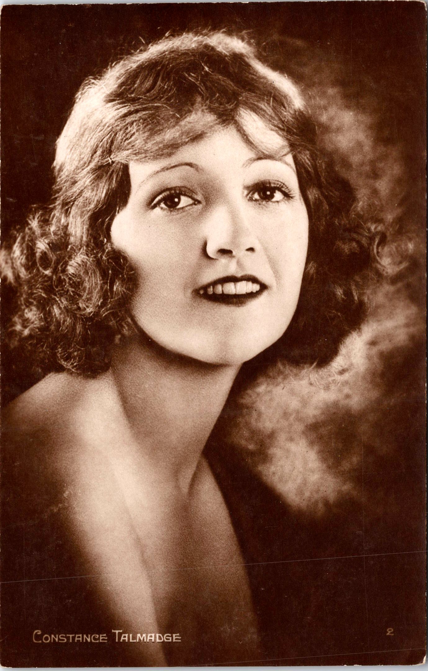 This vintage real photo postcard features pretty film actress, Constance Talmadge (1898-1973). She was a silent film star and the sister of actresses Norma and Natalie Talmadge. Constance was born in Brooklyn, New York. Her parents were poor and her father was an alcoholic who abandoned the family in Constance’s early childhood. Her mother worked as a laundress. Mom’s friend suggested that she should try to get Norma a modelling job in flickers, which were shown in nickelodeons. Mom followed the suggestion and that led all three sisters into acting careers. It also led to mom becoming a stereotypical “stage mother”. Constance made her film debut in a Vitagraph comedy short entitled “In Bridal Attire” (1914). Her first substantive role was in D. W. Griffith’s “Intolerance” (1916). Talmadge became a popular star and appeared in more than 80 films during her career. Many of the films were romantic comedies. She also formed her own film production company. She was friends with Anita Loos, a very successful early screenwriter. Loos said she appreciated Talmadge’s “humor and her irresponsible way of life”. Constance left the film business with the introduction of “talkies”. In fact, all three sisters retired around the same time. Apparently, their squeaky Brooklyn accent was not compatible with sound films. Constance became a successful real estate and business investor. Unfortunately, only a few of her films survive. In some ways, Constance lived a tragic life. She became a reclusive alcohol and drug abuser. She also had many affairs and relationships end badly. She was married four times but never had any children. Her first marriage, to a Greek tobacco importer, lasted two years. Marriage number two was to a Scottish soldier and the couple’s union lasted one year. Her third marriage was only two years duration. The fourth time must have been the charm, as she and her stock broker husband were married about 25 years. The marriage only ended upon his death. In 1973, Constance Talmadge died from pneumonia. This vintage real photo postcard was published by Cinemagazine. This postcard is in very good condition. Only minor edge and corner wear are present (see scans).