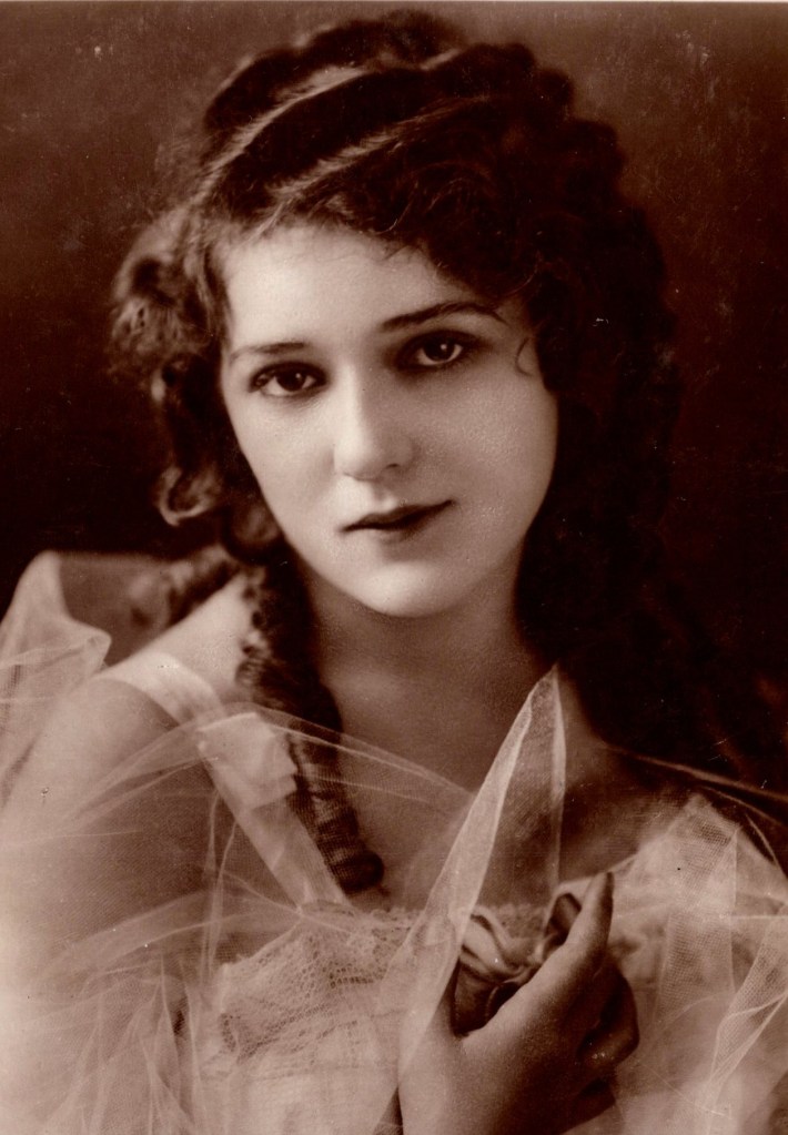 Mary Pickford (1892-1979) was a Canadian-American actress and one of the most influential figures in early Hollywood. She was often referred to as “America’s Sweetheart”. She was a pioneer of silent film and a co-founder of the film industry as we know it today. Pickford’s career began in childhood when she performed in theater productions in Canada and the United States. By the early 1900s, she transitioned to film, working with director D.W. Griffith at Biograph Studios. Her delicate beauty and expressive acting quickly made her a fan favorite, setting her apart in an era when exaggerated stage-style performances dominated silent films. During the 1910s and 1920s, Pickford became one of the highest-paid and most beloved actresses in the world. Starring in films such as Rebecca of Sunnybrook Farm (1917), Daddy-Long-Legs (1919), and Pollyanna (1920), she was known for playing wholesome, spirited young women. Her curly hair and signature on-screen innocence became iconic, but she was also a savvy businesswoman who understood the power of her brand. Pickford was not only a star but also a trailblazer in the film industry. In 1919, she co-founded United Artists alongside Charlie Chaplin, Douglas Fairbanks (her then-husband), and director D.W. Griffith. This revolutionary move allowed filmmakers to control their own productions rather than rely on major studios, changing the industry forever. As the film industry transitioned to “talkies,” Pickford retired from acting in the early 1930s, though she continued to produce films. Her contributions earned her an honorary Academy Award in 1976 for her lasting impact on cinema. Mary Pickford’s influence extends beyond her films. She helped shape the star system, paved the way for women in Hollywood, and co-founded the Motion Picture Relief Fund to support struggling actors. She remains an enduring symbol of early Hollywood glamour and innovation. Mary Pickford was born into a working-class family in Toronto, Canada. Her father, John Charles Smith, was an alcoholic who struggled to provide for the family and died from a workplace accident when Mary was just six years old. Her mother, Charlotte Hennessey Smith, was left to raise Mary and her two younger siblings, Lottie and Jack, on her own. To support the family, Charlotte encouraged her children to enter acting, and Mary began performing in theater at a young age. She soon became the family’s primary breadwinner, and her siblings, Lottie Pickford and Jack Pickford, also pursued film careers. Pickford transitioned from theater to film in the early 1900s, quickly rising to fame with her expressive acting and wholesome on-screen persona. By the 1910s and 1920s, she was one of the most recognizable stars in the world, earning the nickname “Queen of the Movies.” She also helped establish the Academy of Motion Picture Arts and Sciences. Mary Pickford was married three times. Pickford’s first marriage was to silent film actor Owen Moore (1911-1920). Her second and most famous marriage was to fellow silent film actor, Douglas Fairbanks (1920-1936). Her third marriage was to actor Charles “Buddy” Rogers (1937-1979). After retiring from acting in the early 1930s, Pickford focused on producing films and philanthropy. She became more reclusive in her later years, struggling with alcoholism and health issues. Today, she is remembered as a pioneering force in cinema history. This vintage early 20th-century real photograph postcard depicting Mary Pickford, was issued by Rotary Photo, E.C., and bears the serial number 11873A. Rotary Photo was a major British publisher of celebrity and theatrical postcards, known for producing high-quality real photograph cards from studio portraits of prominent stage and film performers. The image presents Pickford in a soft, intimate studio portrait, shown from the shoulders up, wearing a sheer, gauzy costume that frames her face and neckline. Her hair is styled in loose curls, arranged simply rather than theatrically, reinforcing the youthful quality of the image. Her expression is calm and introspective, with a direct, slightly wistful gaze that emphasizes her delicacy and screen presence. In this portrait, Pickford appears quite young, consistent with her image during the late 1910s, when she was already famous but still closely associated with youthful roles. This exact portrait is held by the National Portrait Gallery, London, which dates the photograph to circa 1918, providing a solid institutional reference point for dating. The card was printed in Britain and is clearly identified on the reverse as a real photograph. The postcard is in very good antique condition overall. The image retains strong tonal quality with good clarity and contrast. Corners only show light wear and there are no creases, tears, or losses. The reverse is clean. Overall, the card presents very well and remains highly displayable {See Scans).