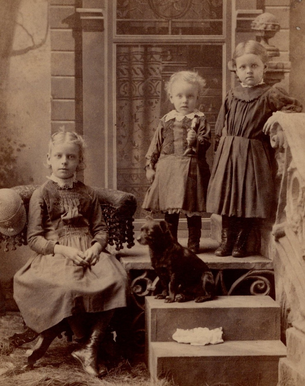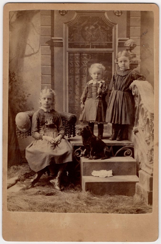THREE ADORABLE SIBLINGS & A DOG : MILLER & ANDERSON : SHELBY, IOWA : LATE 1880’s