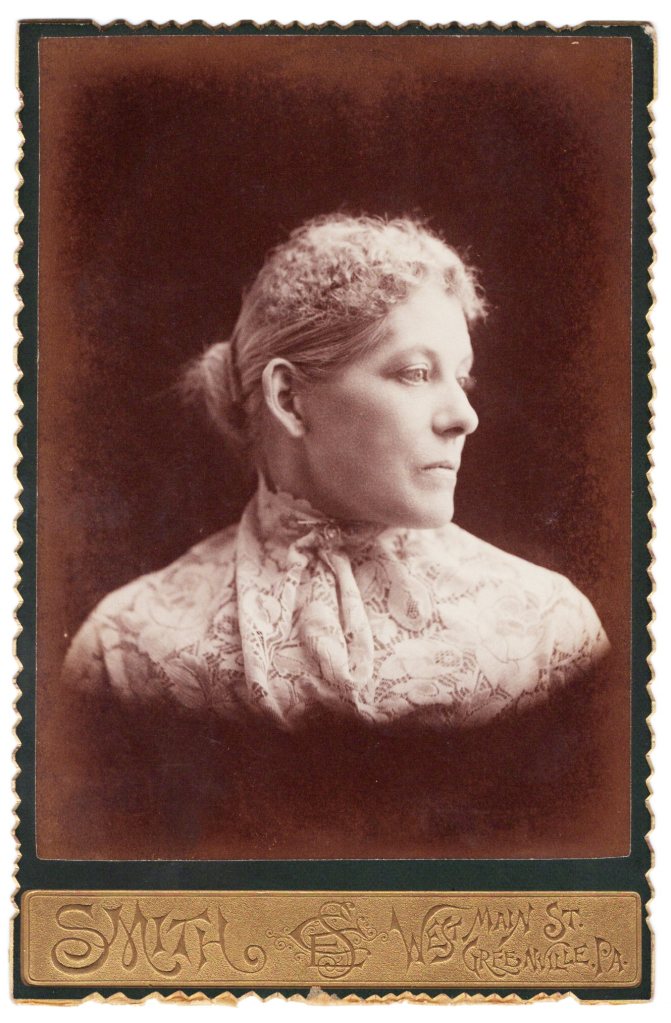 This cabinet card features a portrait of a blonde woman photographed by Smith of Greenville, Pennsylvania. A remarkable feature of this card is Smith’s use of dramatic lighting to present a crisp and clear image of the woman sitting for the portrait. The photographer is likely E. C. Smith who is noted in a number of photography magazines, from the late 1890’s, as an award winning photographer from Greenvile, Pennsylvania.  SOLD