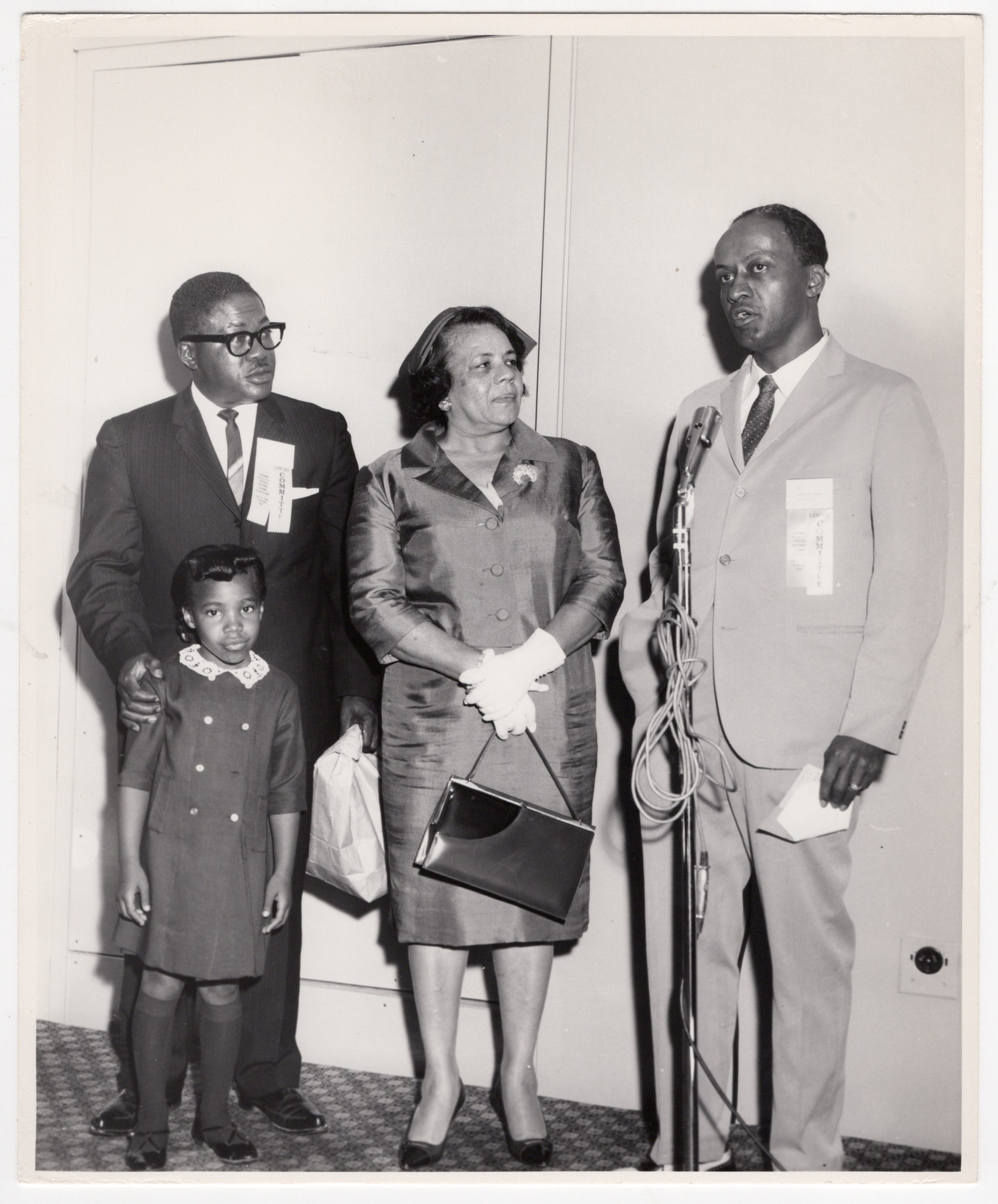 This original black-and-white press photograph was taken by noted Cleveland photographer Jimmy Baynes, whose stamp appears on the reverse. Baynes was a prolific photojournalist and chronicler of Cleveland’s African American community during the mid-20th century. His work documented civic events, political gatherings, cultural programs, and the everyday lives of African Americans in Cleveland. His images today stand as a vital record of local history and are increasingly valued by collectors of press photography and African American ephemera. The photograph depicts a group at the Associated Community Blood Banks booth (Cleveland, Ohio). The booth is labeled “54 Associated Community Blood Banks” on the backdrop. Five individuals are present. One of the individuals is a young woman wearing a white uniform and holding testing equipment. She is likely a nurse or a blood bank technician. The scene captures both the professionalism and community service focus of Cleveland’s blood bank efforts in the late 1960s or 1970s, with an emphasis on outreach, participation, and health education. The candid but posed composition reflects Baynes’s signature style of highlighting people within civic and cultural spaces. The photographer of this photograph, Jimmy Baynes was known for his ability to capture the essence of African American life, culture, and entertainment from the 1950s through the 1980s. Originally a postal worker, Baynes pursued photography as a passion, ultimately founding Baynes Foto Service. His work chronicled the vibrancy of mid-century African American social life, from intimate gatherings and beauty contests to the pulsating energy of live music performances and political events. Baynes photographed some of the most iconic figures in entertainment history, including Aretha Franklin, Louis Armstrong, Count Basie, Mahalia Jackson, Louis Jordan, Jerry Lee Lewis, the Platters, and the Drifters. His ability to capture both candid and staged moments gave his work a lasting impact, preserving the rich history of Cleveland’s African American community. His legacy is recognized today by institutions such as the Rock and Roll Hall of Fame and Museum Library and Archives in Cleveland, which houses a collection of his photographs, primarily focusing on music and entertainment. In 2010, shortly before his passing, his work was featured in the “Polaroid: Instant Joy” exhibition in Brooklyn, New York, reaffirming his role as a visual storyteller of African American life in the mid-20th century. (SOLD)