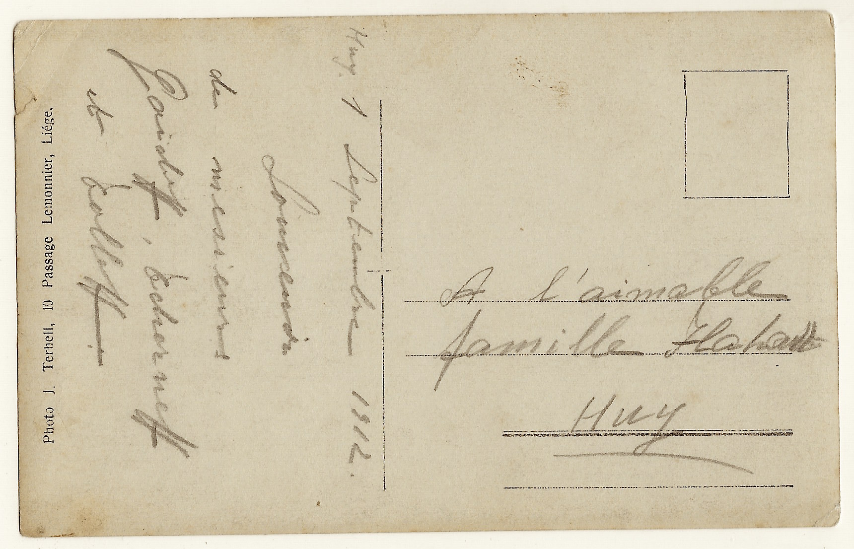 This vintage real photo postcard features three handsome mustachioed young men. All of the men are wearing suits. Content on the reverse of the photograph reveals that the photograph was taken in 1912. The three gentlemen are identified by last name on the verso of the postcard. The photographer is identified as J. Terhell and his/her studio was located in Liege, Belgium. Liege is located along the Meuse River in the Wallonia region. The Wallonia area is French-speaking. The city is an important commercial and cultural hub. This photo postcard is in good condition (see scans).