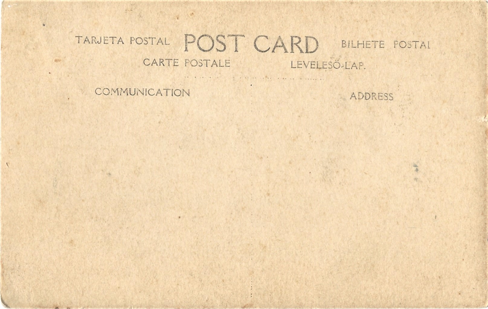 This vintage real photo postcard features four siblings posing for their portrait. Each child is cuter than the other. Note the boy’s neatly combed hair and bow tie. The girl sitting on the chair appears to be the only one having a good time at the photographer’s studio. She is showing a hint of a smile. This postcard’s stamp box indicates that the card was published by Crown Studios sometime between 1913 and 1929. (SOLD)