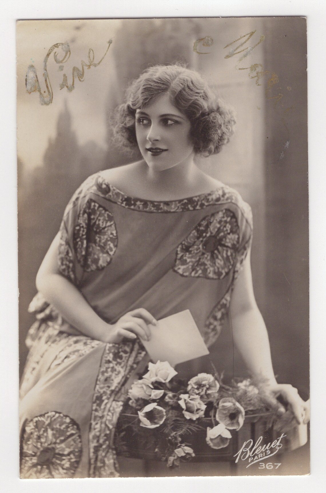 Postcard 2 was published by Ross Verlag (no.5035/2). Miss Jana’s photograph was taken by the Manasse studio in Vienna, Austria. The Manasse studio was in existence between about 1922 and 1938. The studio was run by Olga Solarics (1896-1969) and her husband Adorja’n von Wlassics (1893-1946). Olga was known for her interest in photographing nudes. The studio flourished in Vienna during the 1930’s. Many of the portraits taken by the studio had an erotic flavor. The studio attracted some of the leading ladies of film and theater. (SOLD)
