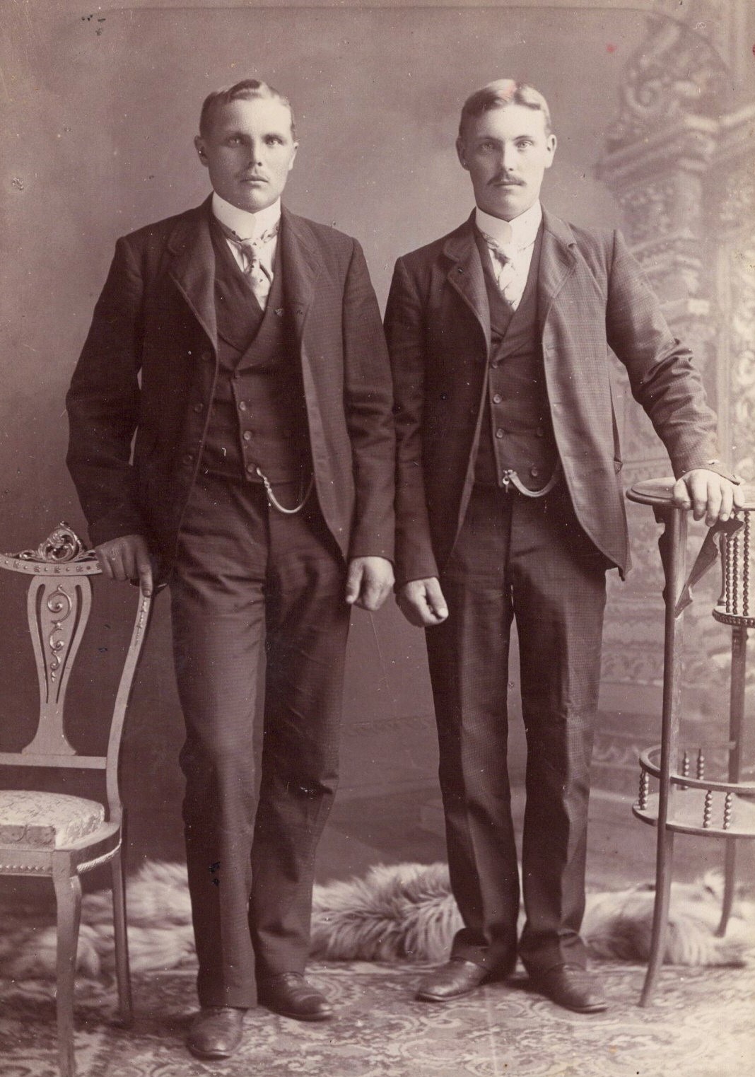 TWO ELEGANTLY DRESSED MEN : DANDIES : FEMALE PHOTOGRAPHER : CABINET CARD