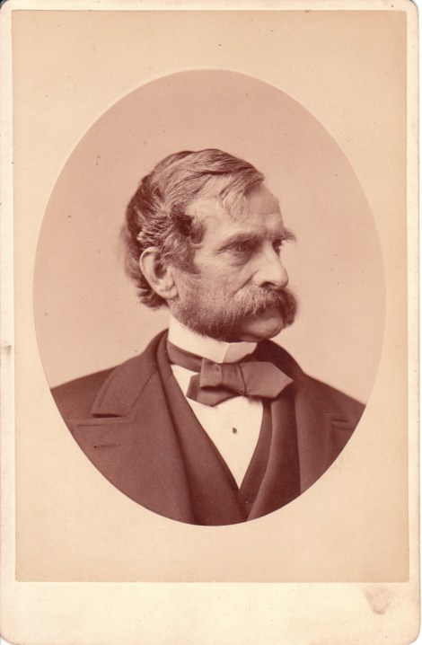 The gentleman featured in this cabinet card portrait looks like someone famous. The photographer of this image is Napoleon Sarony who photographed many celebrities living in or visiting New York City. However, Sarony also photographed many non celebrities so there is no guarentee that the subject of this photograph is someone famous. He certainly does have great facial hair. The reverese of this image is dated 1872. Printing on the reverse indicates that Sarony’s studio was located at 680 Broadway in New York City. The printing lists two names associated with the studio; Napoleon Sarony and Alfred S. Campbell. To view other photographs by Sarony, click on the category “Photographer: Sarony”. To view photographs by Campbell, click on the category “Photographer: A. S. Campbell”.