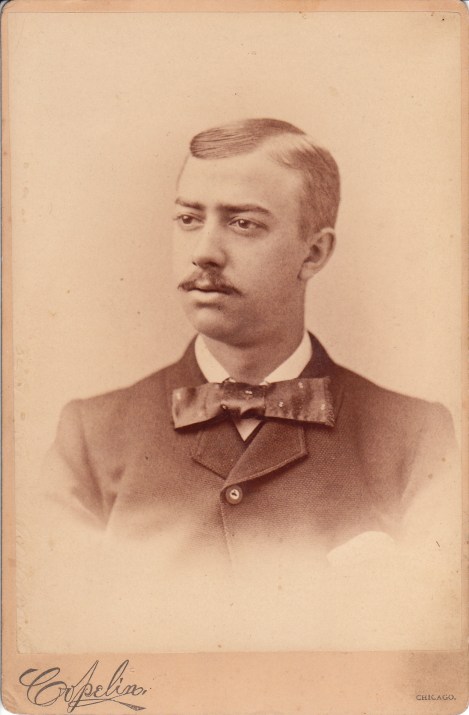 These two cabinet card portraits come from the same source and belong together. Writing on the reverse of one photograph indicates that the couple are named George and Lizzie. Perhaps the young man and woman are married to each other. If not married, the two subjects may be siblings. The photographer of both cards is Copelin whose studio was located on the Northwest corner of Madison and State Streets in Chicago, Illinois. The exact address was 75 Madison Street. Some biographical information concerning the Copelin studio is available, but it is very difficult to sort out. It seems that Copelin had a succession of photography businesses. Alexander J. W. Copeland (1851-c1923) and Melander bought out their boss to open a studio in Chicago sometime around 1870. Copelin & Son was established in 1871 and existed about ten years. The business has an interesting story associated with it. The gallery was established just six days before the Chicago Fire (1871) and the building was completely destroyed in the blaze. The building had been the first photographic gallery in Chicago but had housed many proprietors. A.J. Copelin rebuilt the business. In the early 1880’s, the Copelin Gallery was established. Copelin eventually left portrait photography and opened a successful commercial photography business. Copelin is also recognized as one of the founding fathers of the Photographers Association of America.