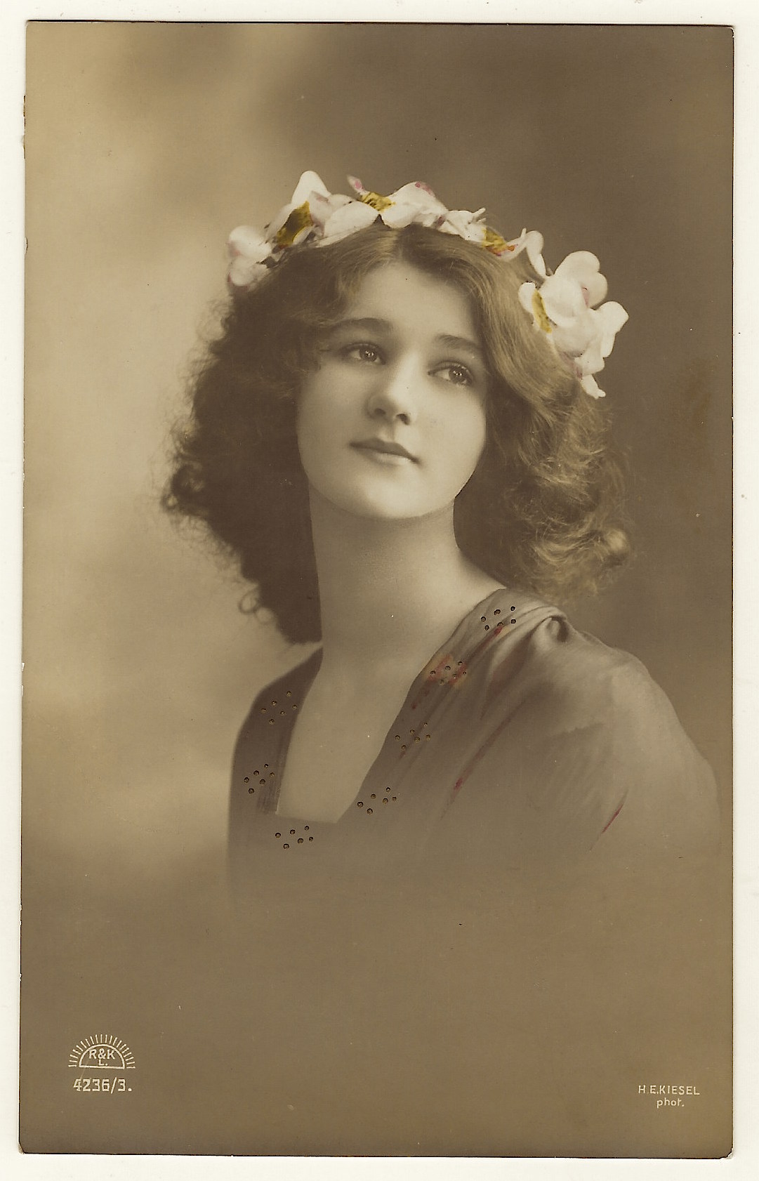Postcard 4 was published by Ross Verlag and is part of a series (no. 3318/1). The portrait of Miss Weyher was taken by the Kiese studio in Berlin, Germany. (SOLD)