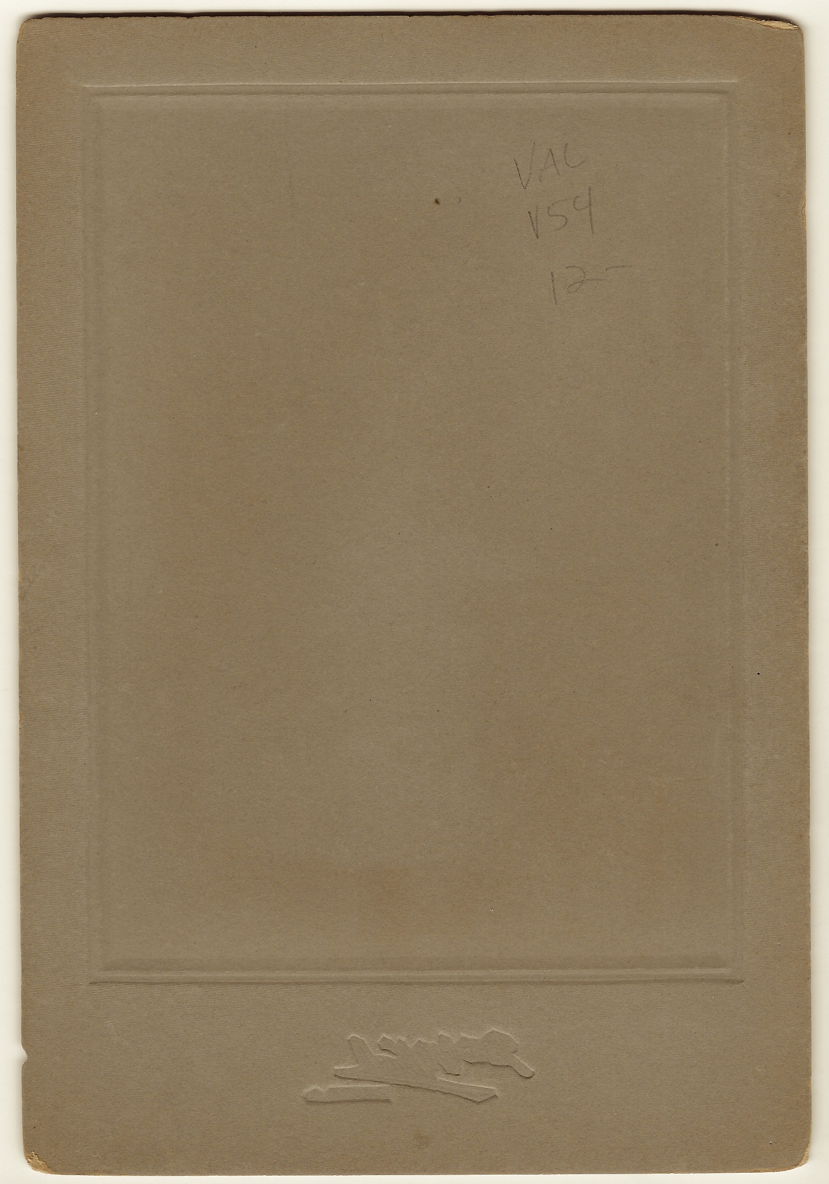 This vintage photograph features an adorable young boy dressed in a sailor styled outfit. He seems to be holding back a smile. The photograph was taken by the Wark studio in Marion, Ohio. James Wark was born in Ireland in 1847. At age 19 he immigrated to the United States and apprenticed for photographer George W Manly (Akron, Ohio). He then worked as a photographer in Kent, Ohio (1871-1891).He is known to have moved to Marion about 1895 and was an active photographer until about 1901. Wark was a busy man in Kent. In the mid 1880’s he he served three terms as Franklin Township’s clerk. He served as mayor of the town between 1886 and 1887. As mayor, Wark had complicated and controversial issues to manage. These controversies included the construction of a municipal waterworks and a resolution to ban saloon traffic in Kent. He relocated to Marion in the Mid 1890’s. He was a popular resident there and picked up the nickname of “Daddy” Wark. He photographed four generations of clients over his more than sixty year career. He closed his studio in 1933 at 86 years of age. He died in 1934. This photograph measures about 5 1/4″ x 7 3/4″.