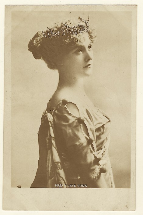 Meet Elsie Cook. I wish there was something I could tell you about her. I assume that she is a performer of some kind. Most likely she is an actress that did not receive much acclaim as my initial research into her background found nothing. Perhaps a visitor to the Cabinet Card Gallery can provide us with some information about this pretty young woman. This vintage real photo postcard was published by Stewart & Woolf. The firm was located in London, England. The postcard is part of a series (115, no. 42). (SOLD)