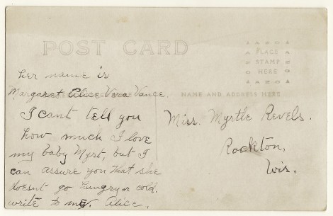 This vintage real photo postcard features an adorable African American little girl sitting in a tree. The little girl’s mother wrote a touching message on the reverse of the postcard. “Her name is Margaret Alice Vera Vance. I can’t tell you how much I love my baby “Mgrt” but I can assure you that she doesn’t go hungry or cold.” This postcard was never mailed and is in very good condition. The “AZO” stamp box indicates that the postcard was produced between 1904 and 1918.