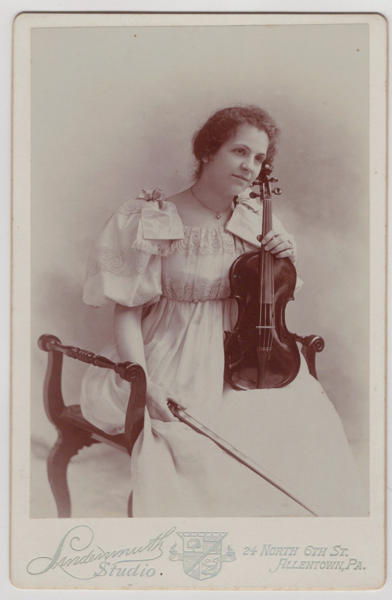 A LADY AND HER VIOLIN IN ALLENTOWN, PENNSYLVANIA (PORTRAIT BY THE ARTIST ARLINGTON NELSON LINDENMUTH)