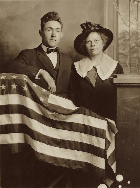 This vintage real photo postcard exudes a form of patriotism that is seldom seen today. The AZO stamp box indicates that this photo was taken sometime between 1918 and 1930. This was an era when it was relatively common for individuals to include flags when having their picture taken. We tend to see a resurgence of exhibiting American flags for short stints during the time of national threat or crisis (ie 9/11). When people chose to pose with flags during the 1910’s and 1920’s, it wasn’t to tout a particular cause. They were just expressing their love and fidelity toward their country. There is faint writing in pencil on the reverse of this postcard. The text states “With love from Mr. and Mrs. Chester McCrumb (?), To our sister Mrs. Jennie Hubbard”. This photo postcard has excellent clarity and is in good condition (See Scans and note bottom right of image). SOLD