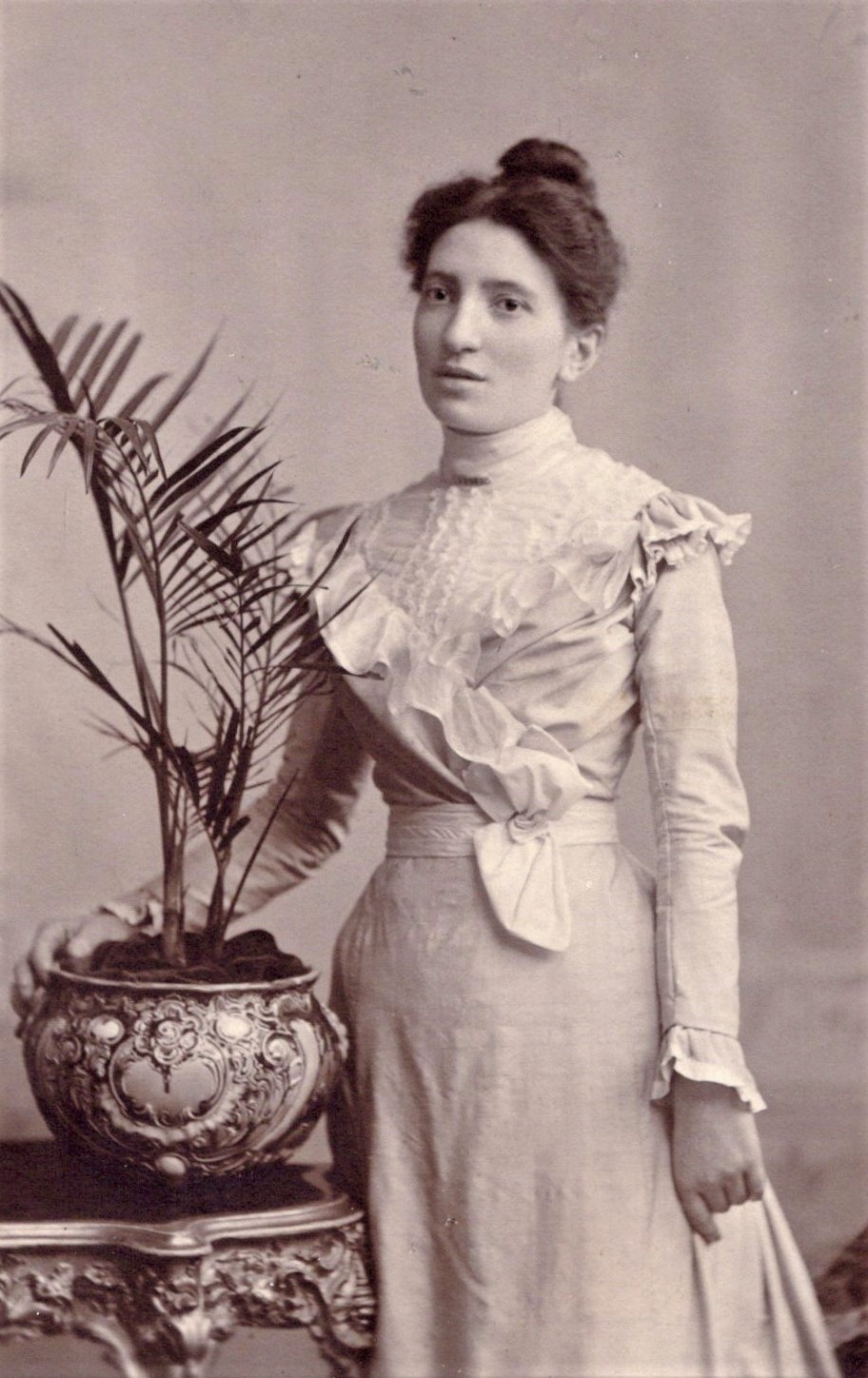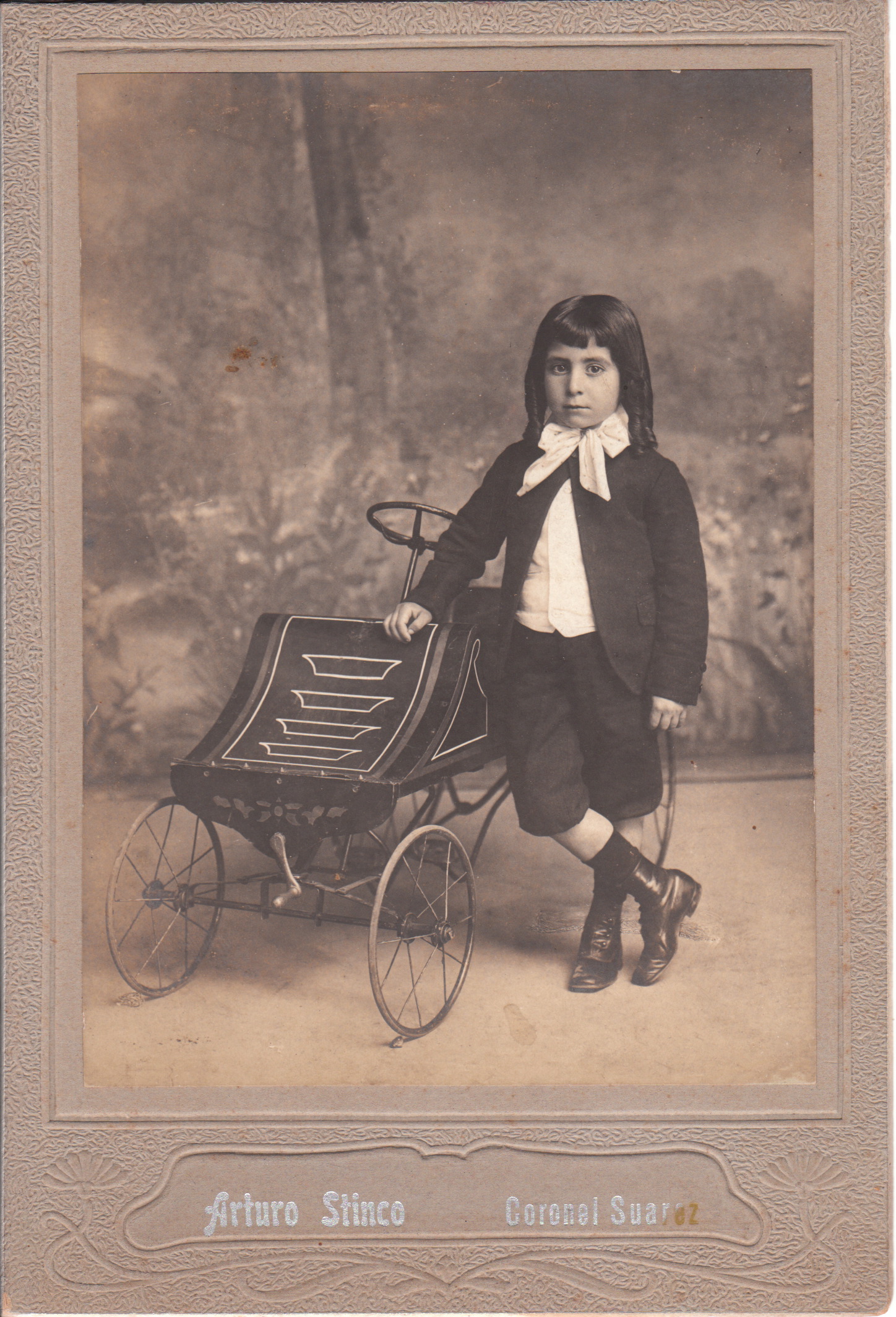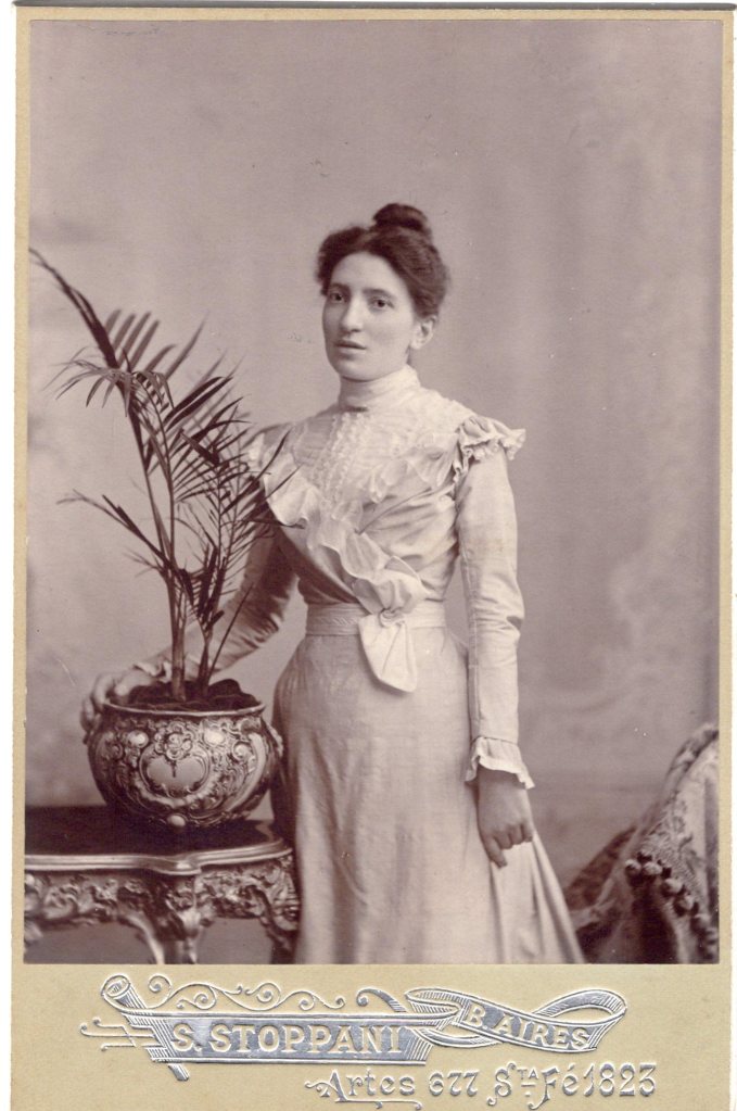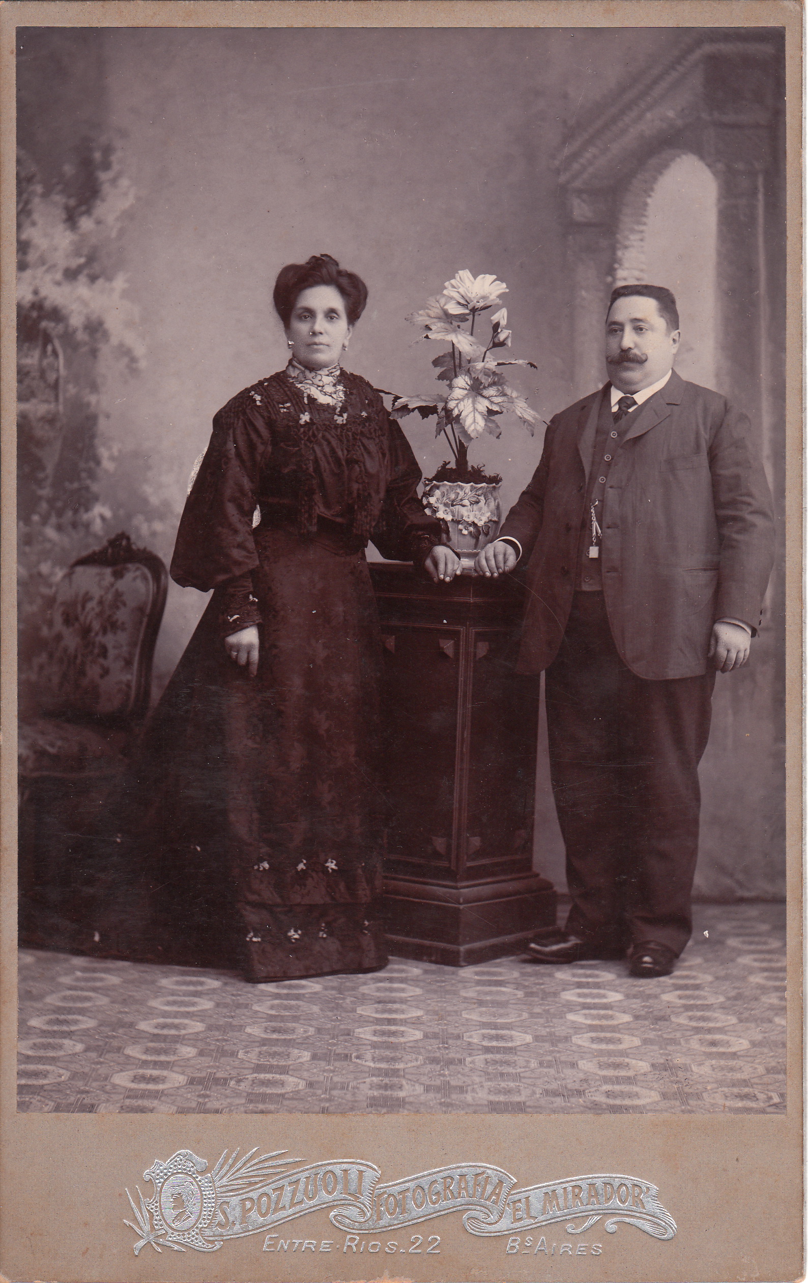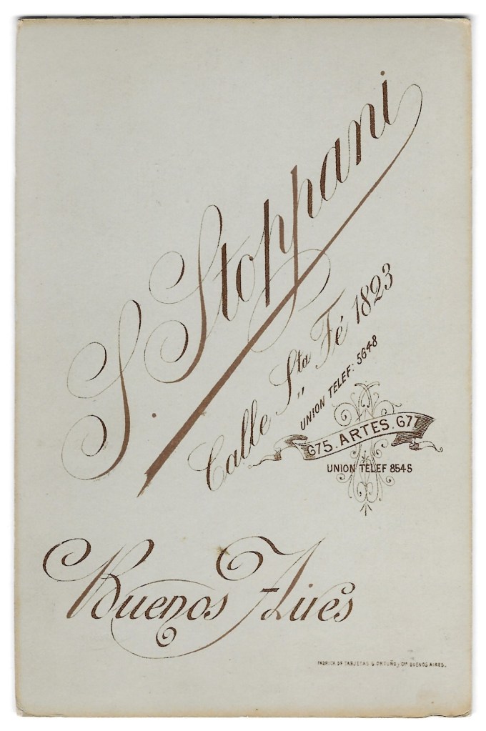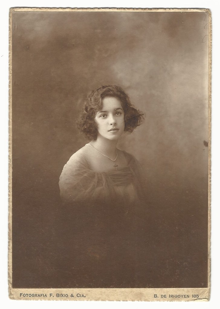 This scallop edged vintage undivided real photo postcard features a pretty young woman sitting in an unusual chair. She looks studious in her stylish glasses. As a collector and seller of vintage real photo postcards, I have found several photographers that I favor. The photographer of this postcard portrait, Florencio Bixio, is one of those photographers. Over many years I have collected and sold many of his photo postcards. Bixio was a talented photographer who operated photo studios in Buenos Aires, Argentina. He was active between at least 1900 and 1930. He died in Buenos Aires in 1933. Bixio specialized in studio portraits, wedding portraits, and photos of entertainers. He also was a correspondent for the magazine “Caras and Caretas”, as well as a producer of photo postcards. Between 1900 and 1930 he opened photography studios in partnership with two other photographers. These studios were called “Bixio and Merlino” and Bixio and Castiglioni”. He was of Italian descent and emigrated to Argentina in 1896. He died in Buenos Aires in 1933. This vintage portrait postcard was made on thicker card stock than most postcards. The card measures about 4 x 5.5 inches. SOLD