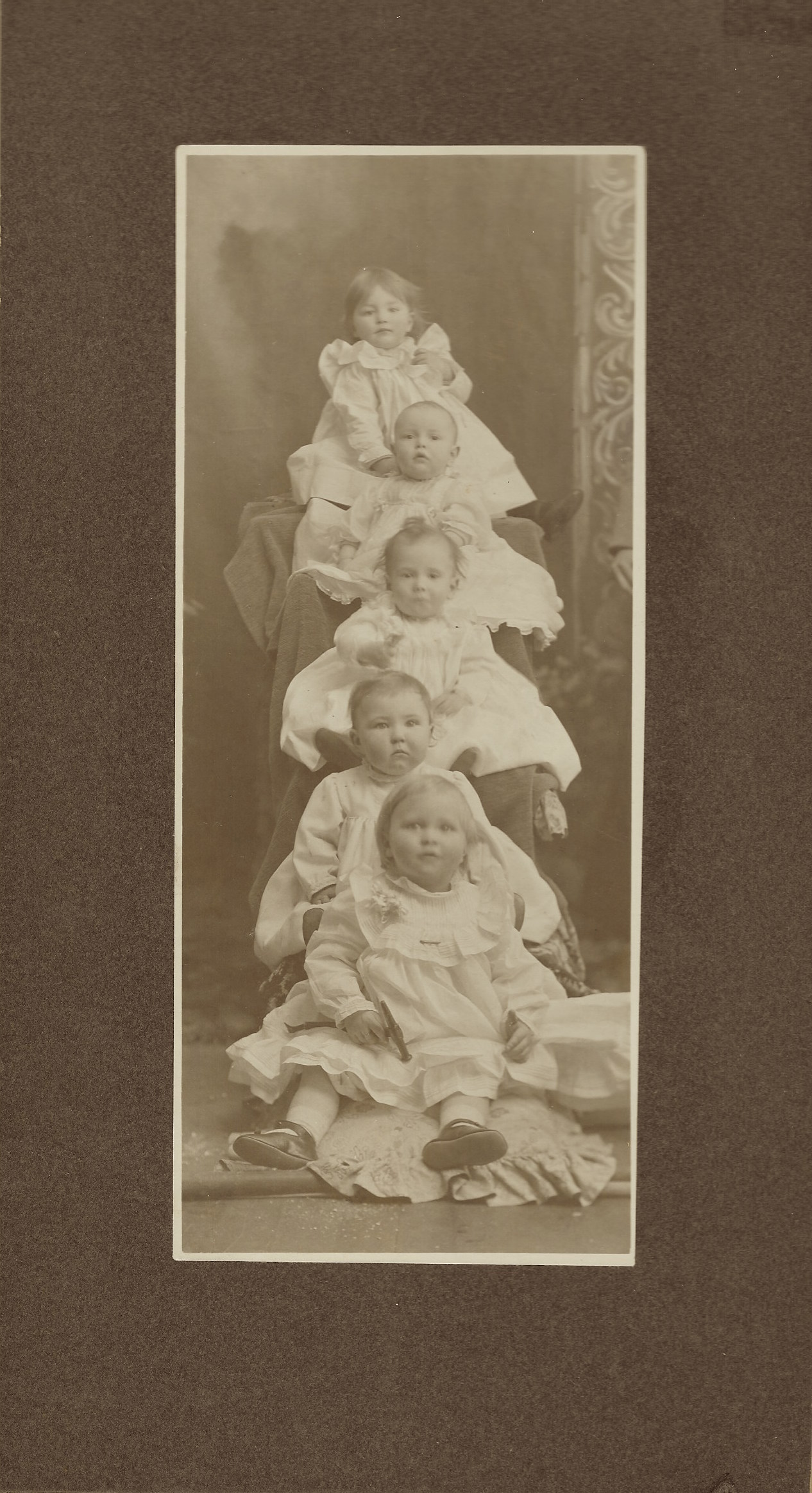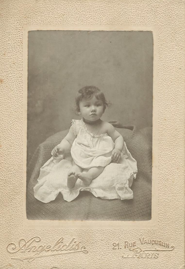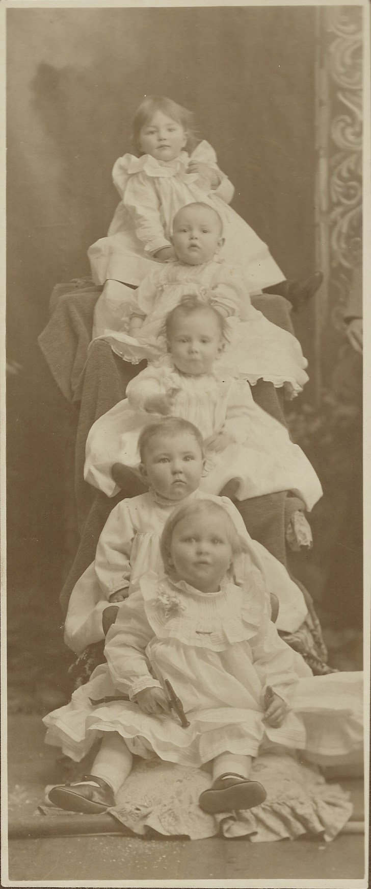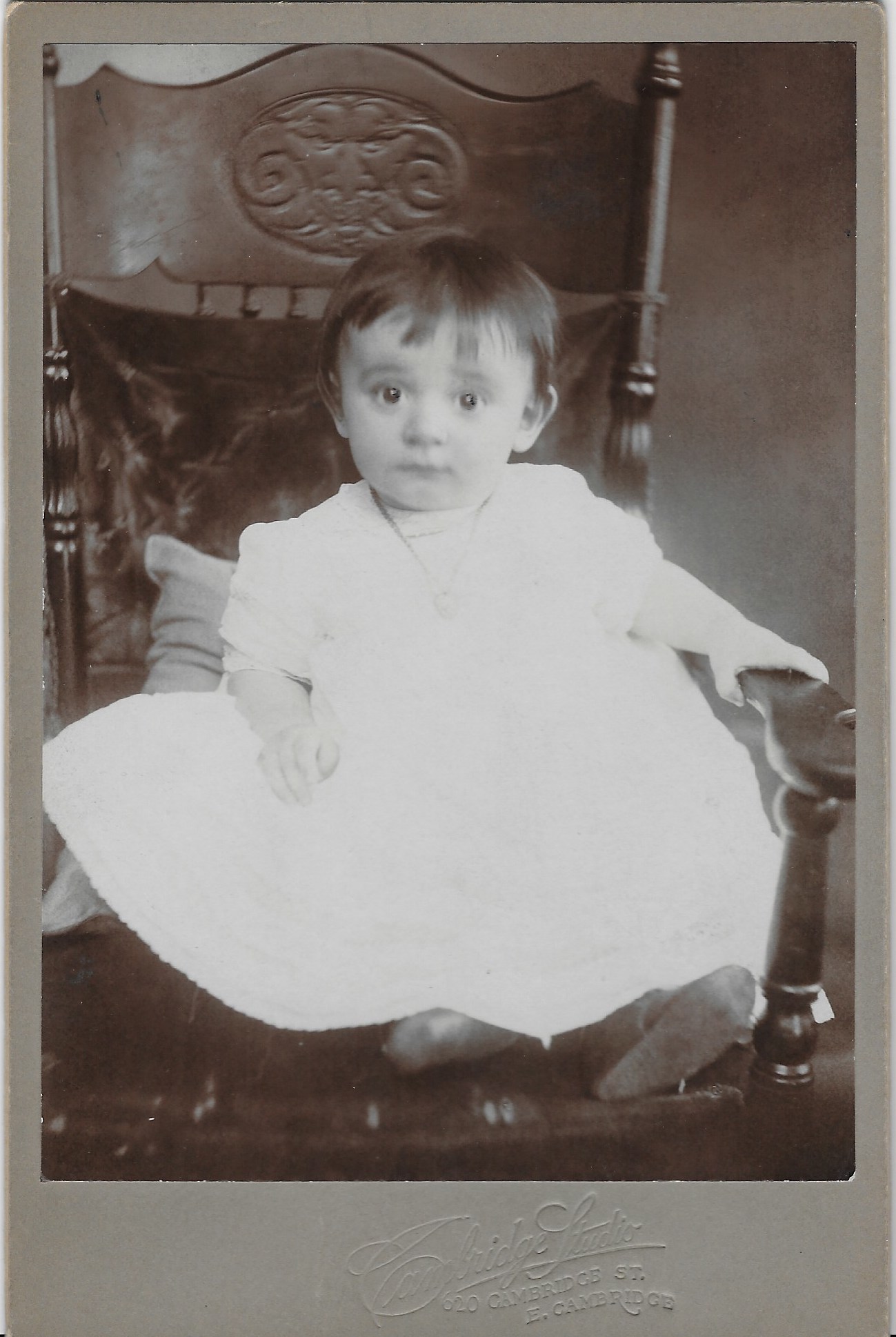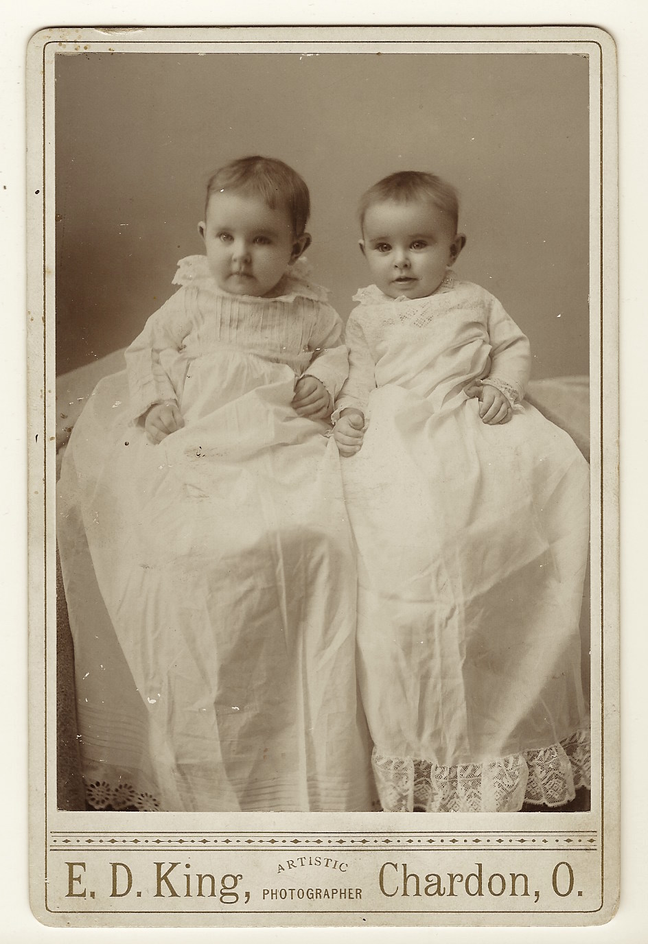 A frowning baby poses for a portrait at a photographers studio on Fourth Street in Huntingburgh, Indiana. The baby is clad in a long gown and sitting on a fur covered surface. The baby is sitting next to a small dog. Research yielded little information about the photographer. The photographer is Mrs. Jos. Sprauer, clearly an early woman photographer. Research found a pioneering photographer named Alois Sprauer of Jasper, Indiana. He founded a studio which operated for decades and was passed on to his son, Albert Sprauer. Jasper and Huntingburgh are nearby towns in southwestern Indiana. The “American Annual of Photography” mentions a W. J. Sprauer of Huntingburgh. The 1880 census includes a Joseph Sprauer, who was born in 1853 in Indiana. Hopefully, the Cabinet Card Gallery’s research department (made up entirely of the sites visitors); can shed some light on the identity of the photographer who created this image. Please leave a comment with any relevant information. SOLD