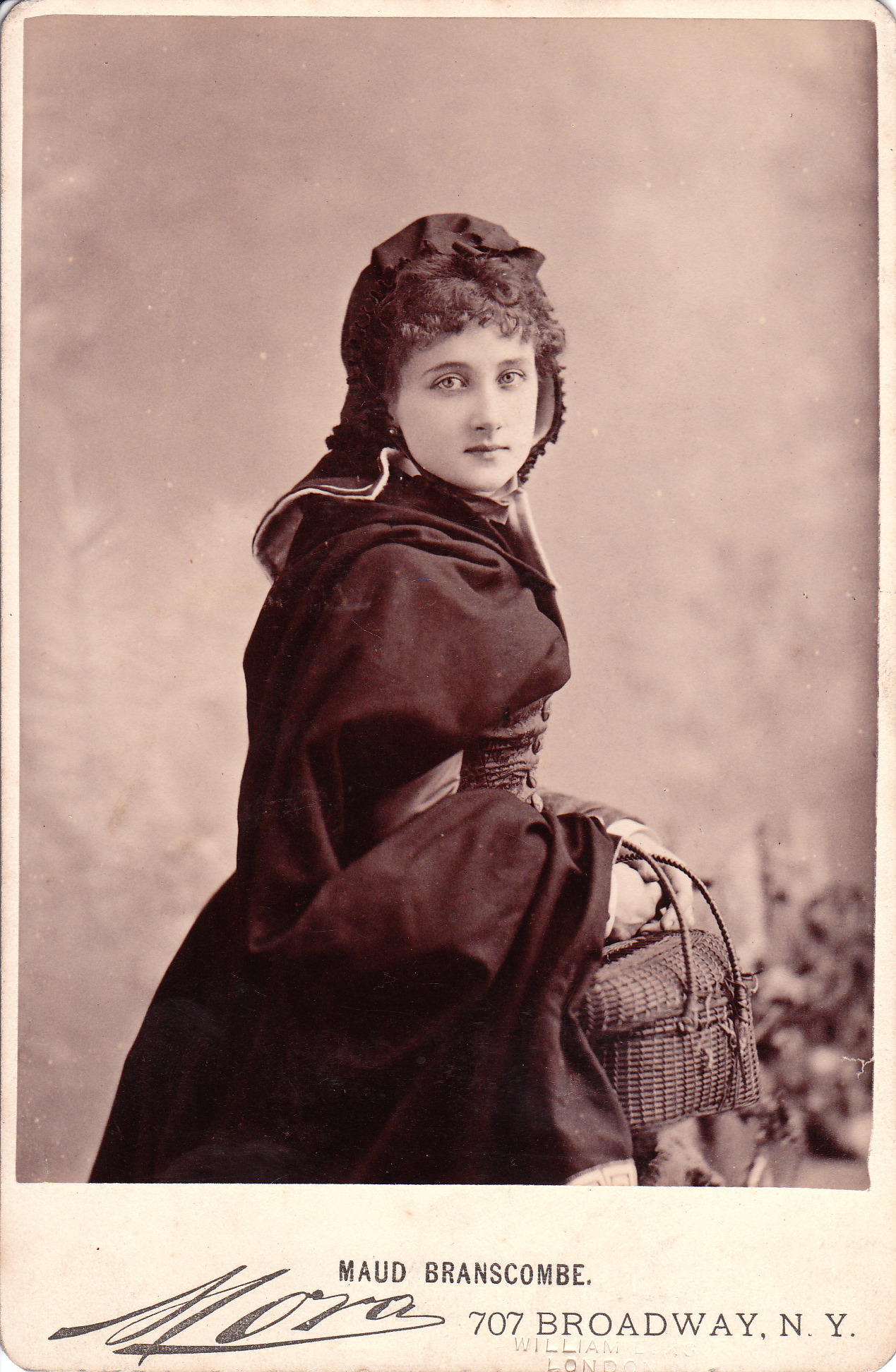 Maude Branscombe was a very popular stage beauty and light opera singer. She was reported to be the most photographed woman of her day. Biographical information about her is sparse and more will be added at a later date. Her first appearance on the New York stage was in 1876 as Cupid in a revival of Ixion at the Eagle Theatre. The portrait at the top was photographed by renowned W & D Downey of London, England.