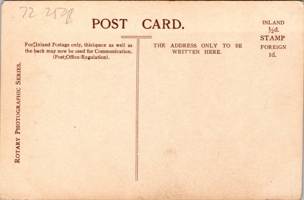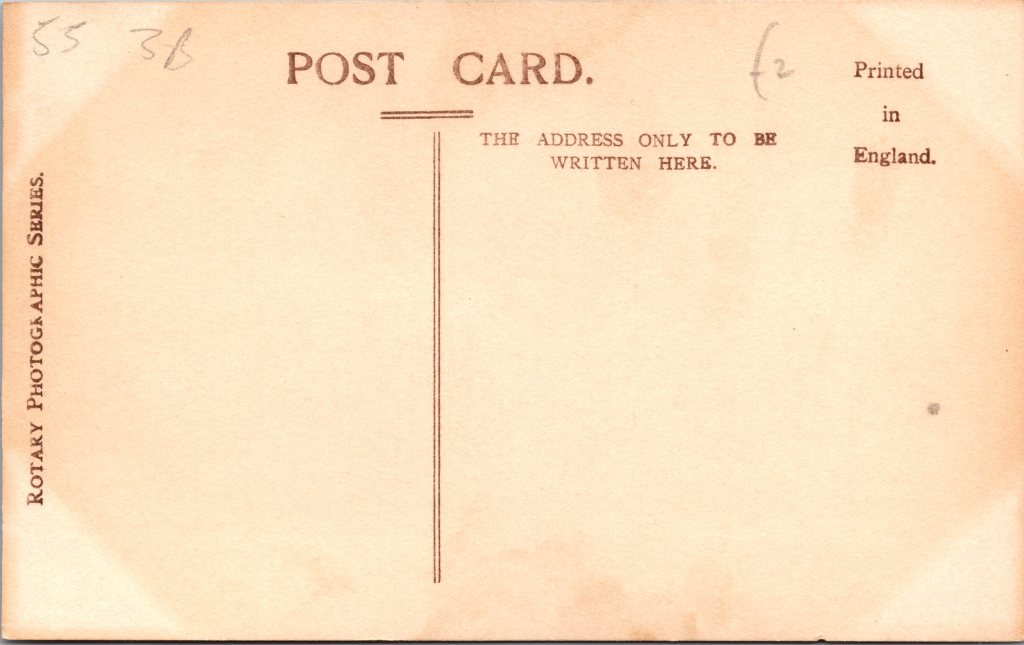 Postcard 4 was printed in Great Britain by Rotary Photo. The card has a 1909 postmark, revealing that Miss James was about 19 years of age when this photo was taken. The postcard is part of a series (no.1984C). The photographer of this image is the Foulsham & Banfield studio. (SOLD)
