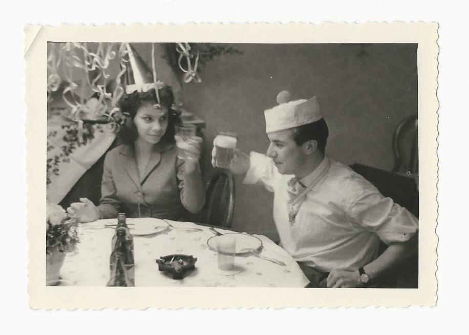 BEAUTIFUL COUPLE MAKING A BIRTHDAY TOAST IN LUCKENWALDE, GERMANY (VINTAGE PHOTO)