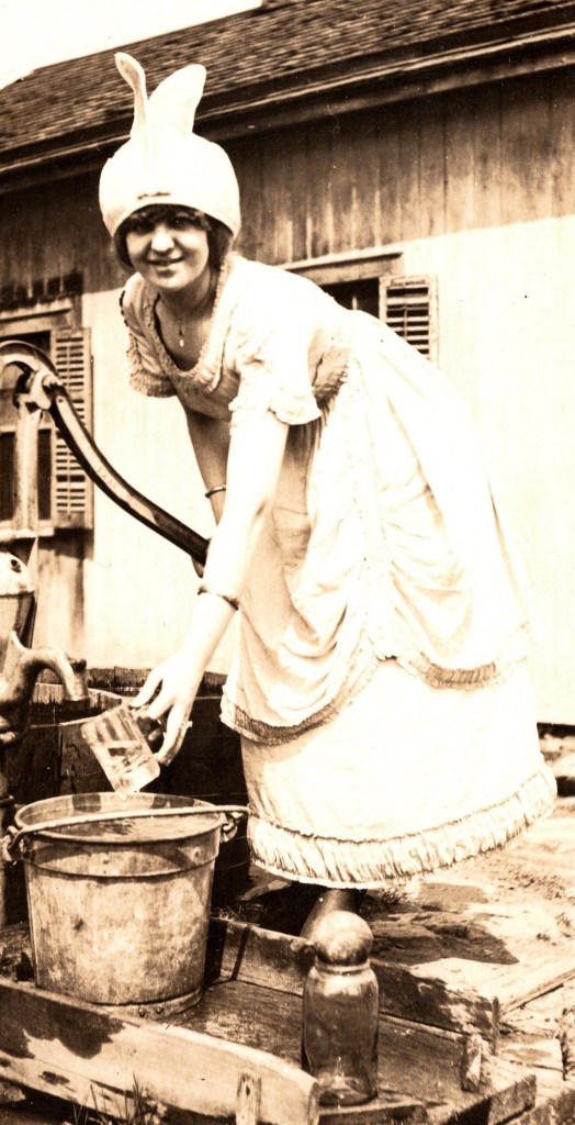 This vintage real photo postcard features a group of German beer lovers gathered around a keg in a country-side setting. This photograph is a treasure trove of interesting elements. First, the keg of beer is labelled with the title “Memories in Lindau 1927” (translated from German). Second,the bruiser in the center of the back row is holding a beer mug on steroids. It is likely that no one will challenge or fight him for the huge glass of dark beer. Finally, what is the story about the gentleman/lady in the center of the middle row. To quote the Kinks, “Girls will be boys, and boys will be girls”. It is likely that the man wearing the dress, seen in this postcard, did so for fun. It is not unusual to see cross dressing in photographs from this era. Generally, wearing opposite sex clothing in these images was done for entertainment, rather than for sexuality reasons. Women also dressed as men in photographs. Vesta Tilley (1864-1952) was an English music hall performer who was one of the most famous male impersonators of her time. She was a star in both Britain and the United States for over three decades (see her photo below). Returning to the subject of the beer drinking celebrants, we learn from the writing on the keg, that they are partying in Lindau, Germany. Lindau is a major town and an island in Bavaria. It is located on the eastern side of Lake Constance (Bodensee in German). The origin of Lindau’s name is thought to be the “linden tree”. Lindau is known for being near the Austrian, German, and Swiss borders. This vintage postcard has excellent clarity and is in very good condition (see scans).